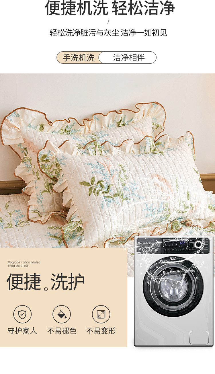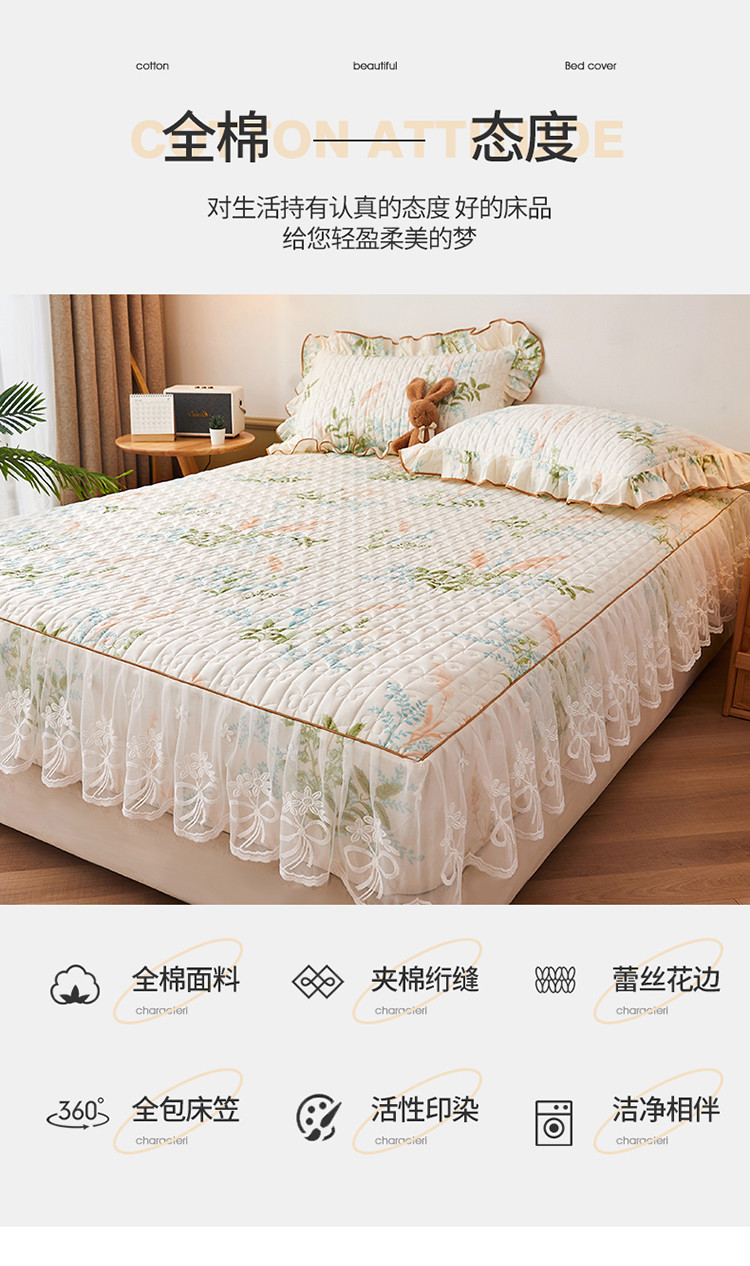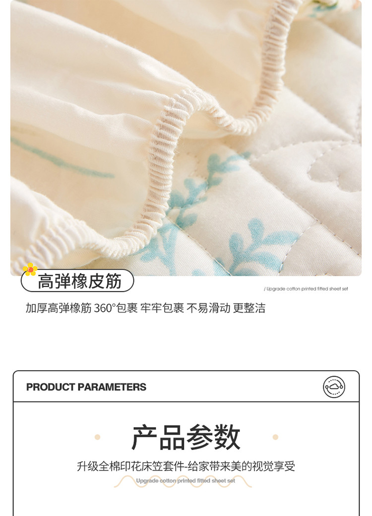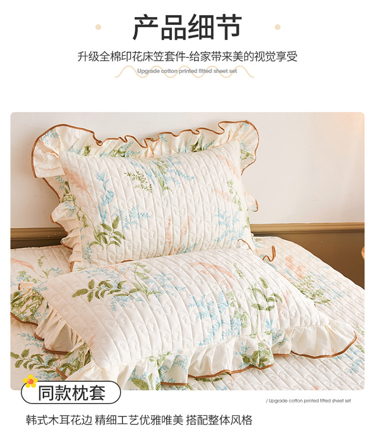 商品名称:宜凡 2023新款四季款夹棉小清新床笠三件套 茗香玉露