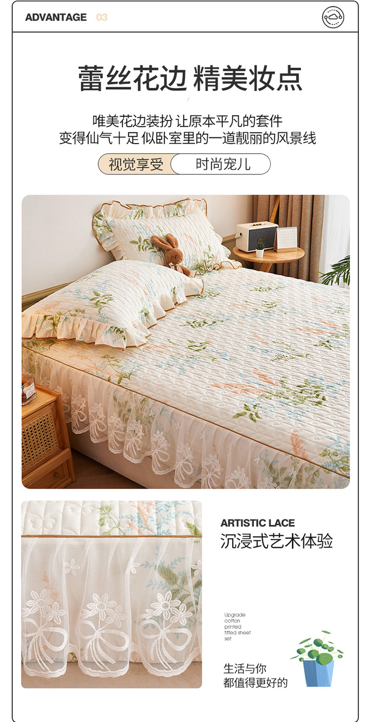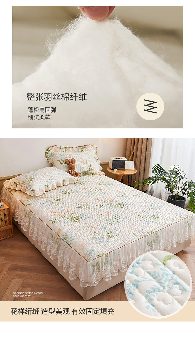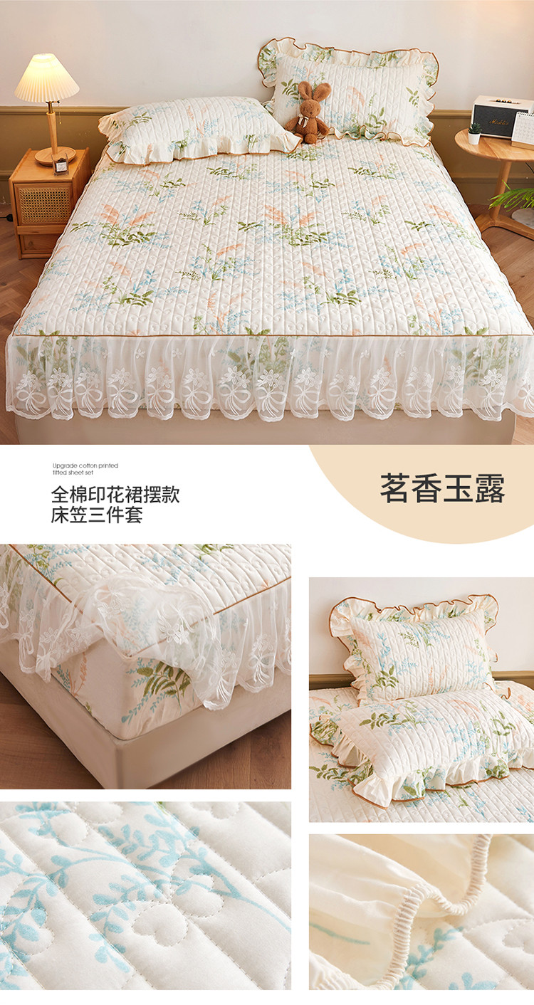 宜凡 2023新款四季款夹棉小清新床笠三件套 茗香玉露