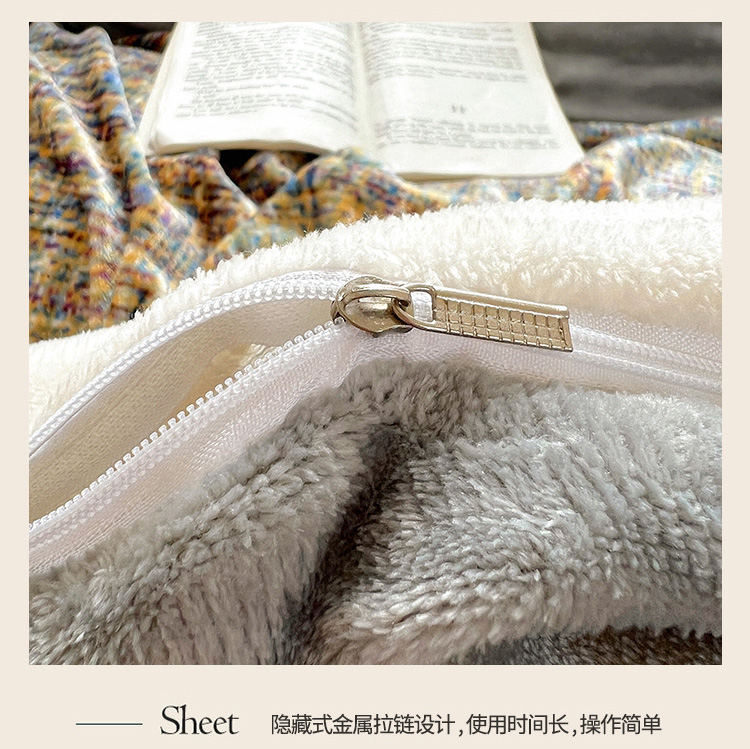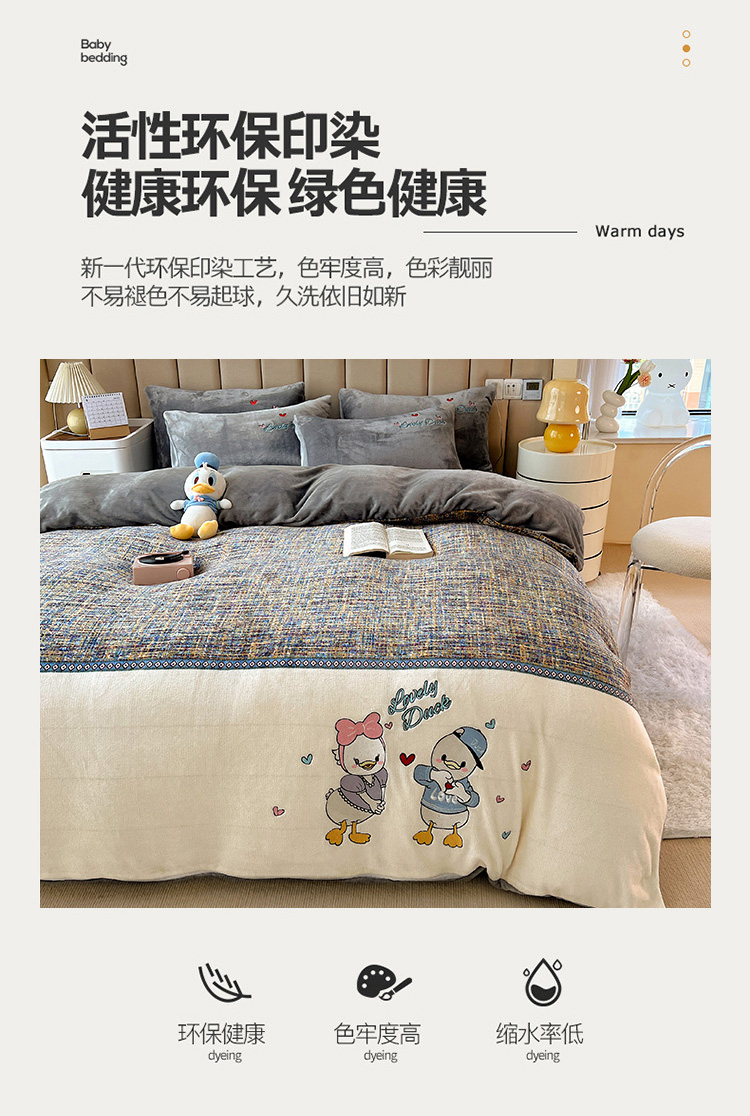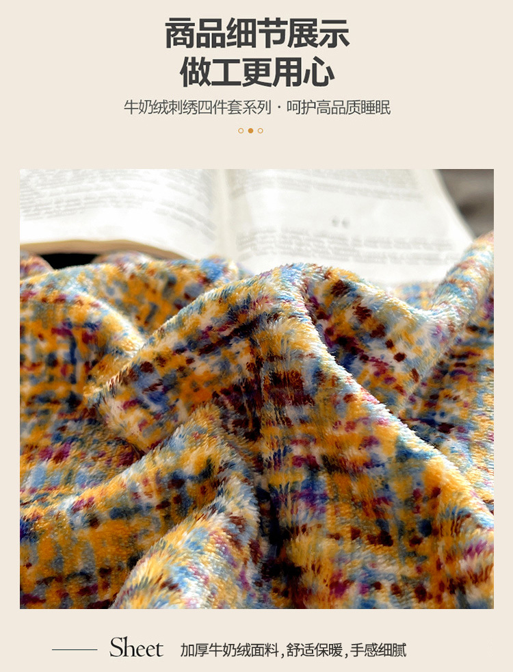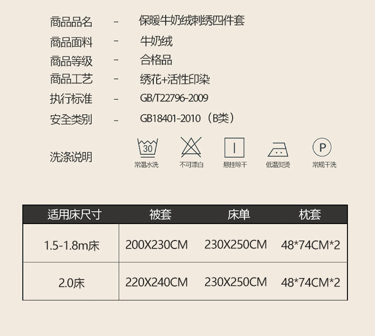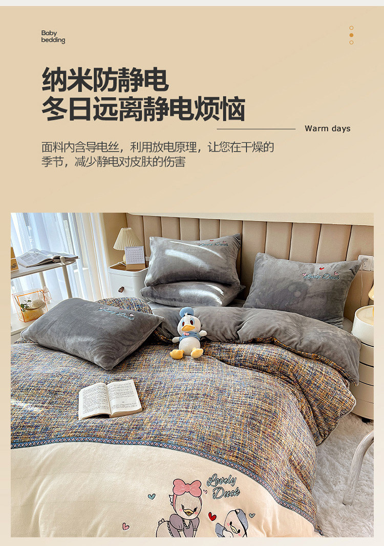 商品名称:芃成 2022新款牛奶绒小香风刺绣卡通四件套 相亲相爱 咖