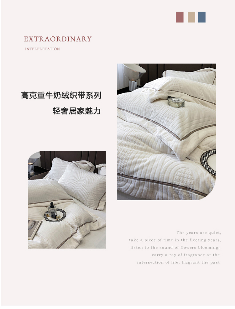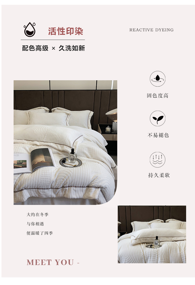 宜代光年 2023新款260克牛奶绒嵌绳莱娜四件套宽境-米白