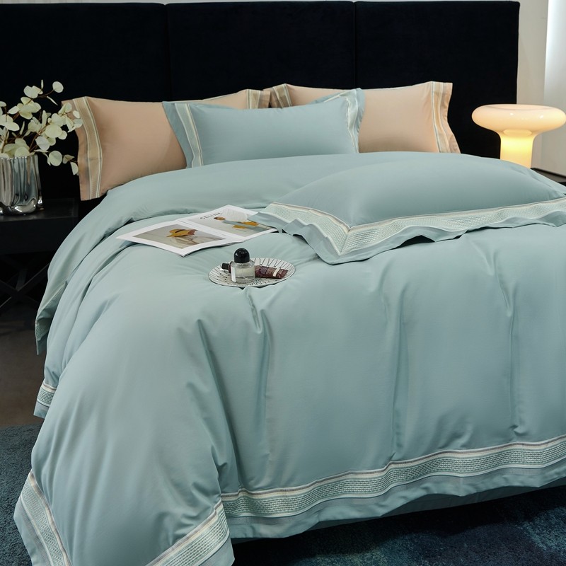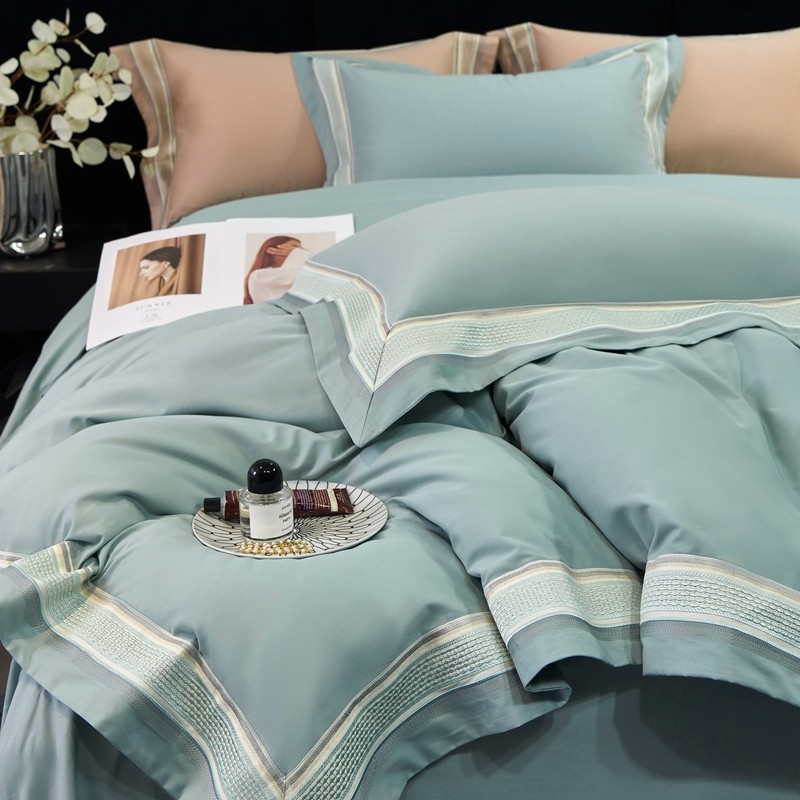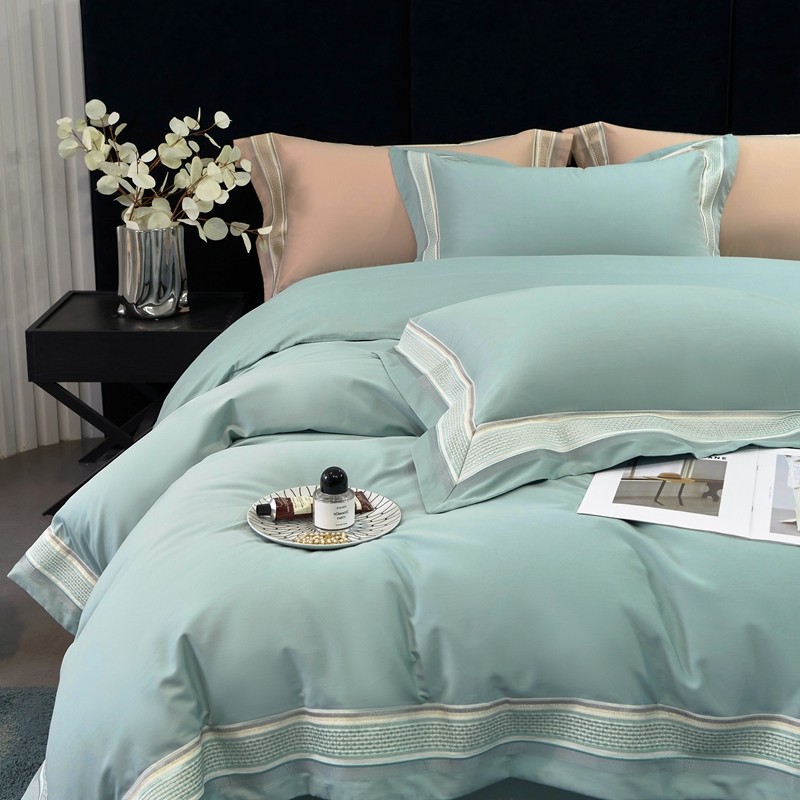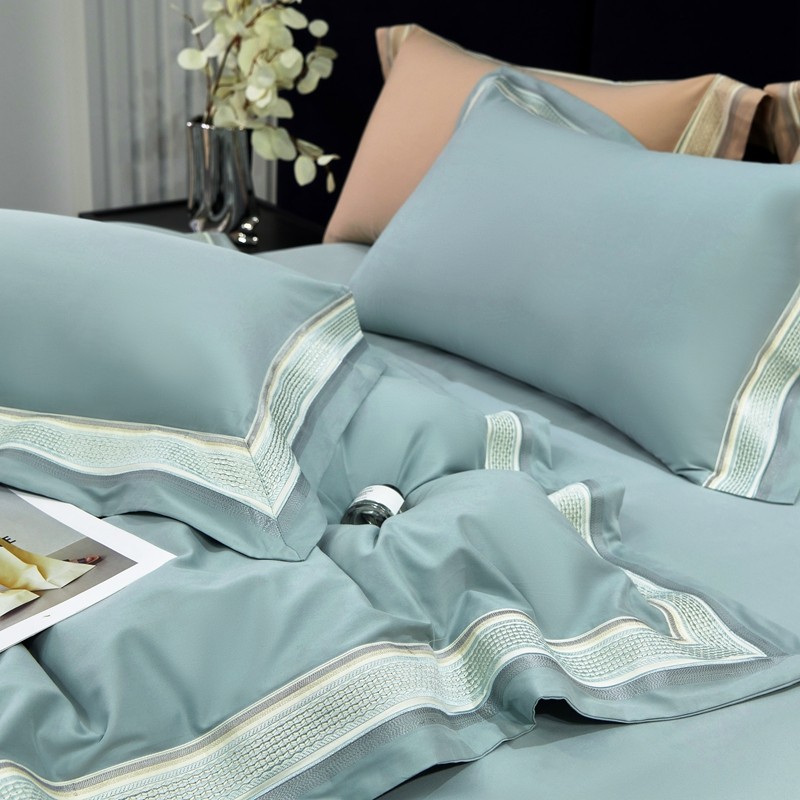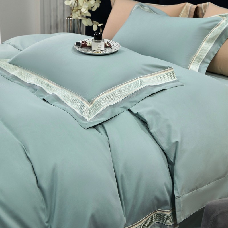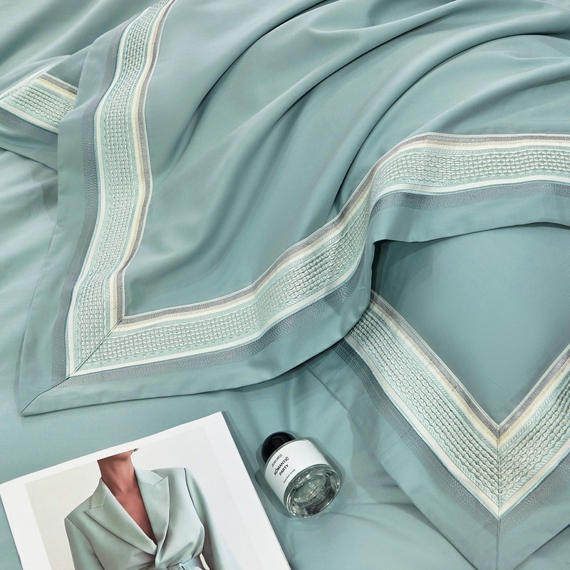 时亿 2022新140支长绒棉磨毛四件套中高端套件 芙拉-雅绿