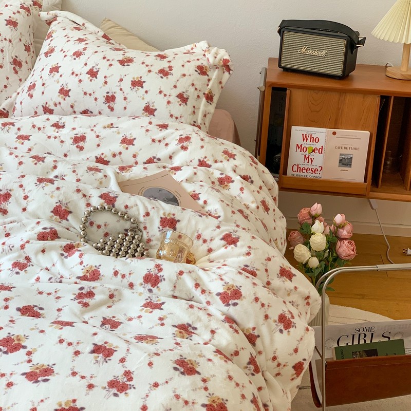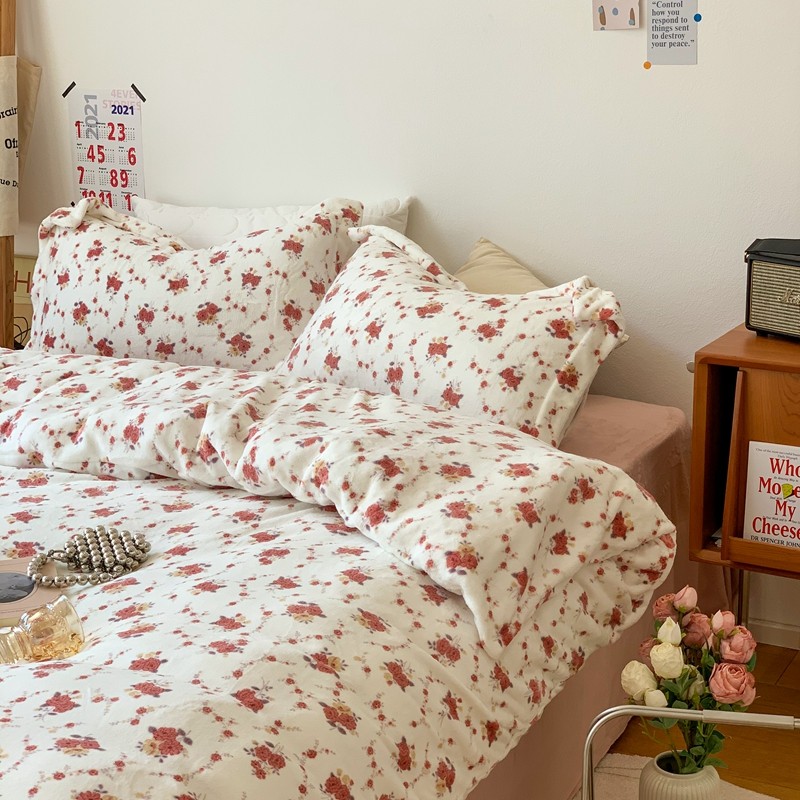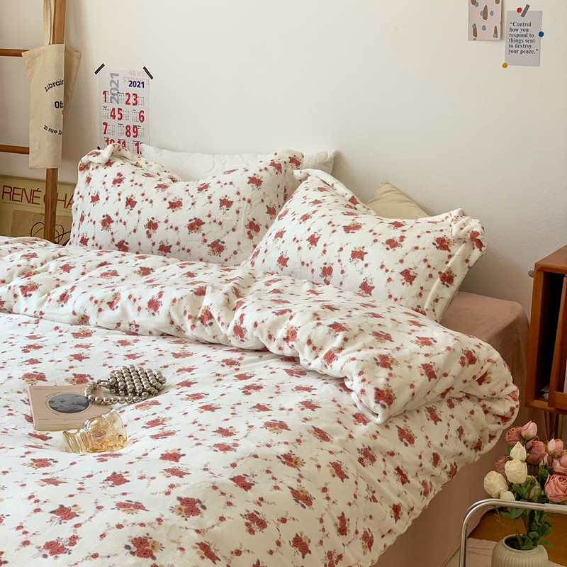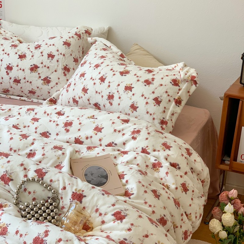 时年 2022新款全消光牛奶绒印花四件套 漫漫花园