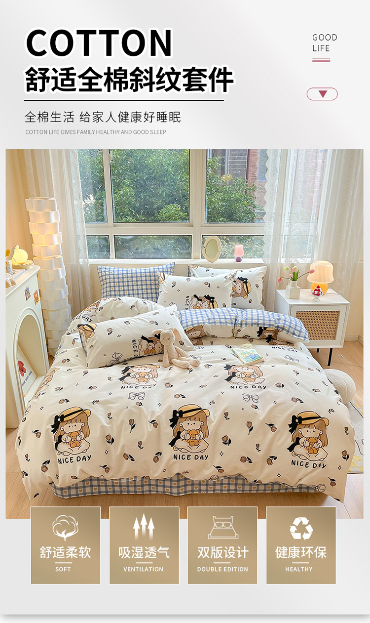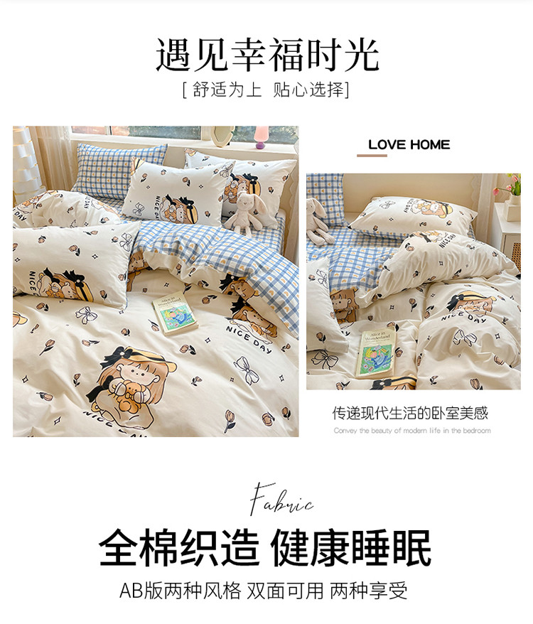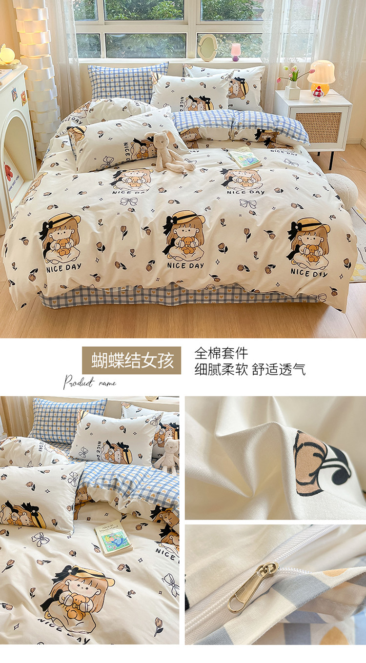 商品名称:金丝鸟 2023新款全棉小清新四件套 蝴蝶结女孩