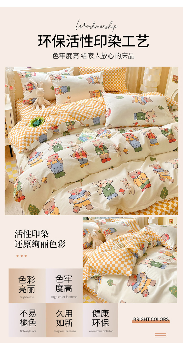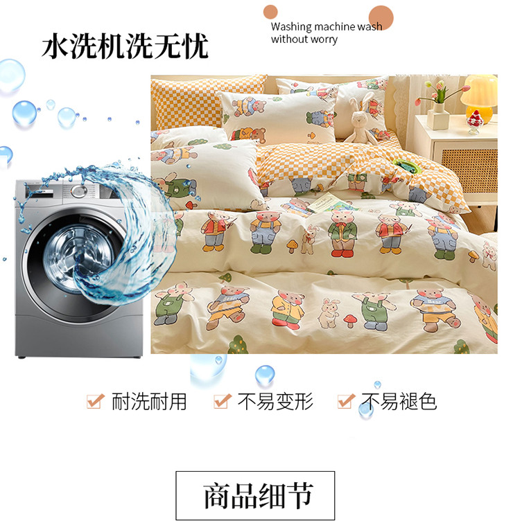 商品名称:金丝鸟 2023新款全棉小清新四件套 熊先生兔小姐