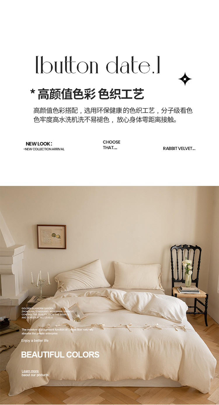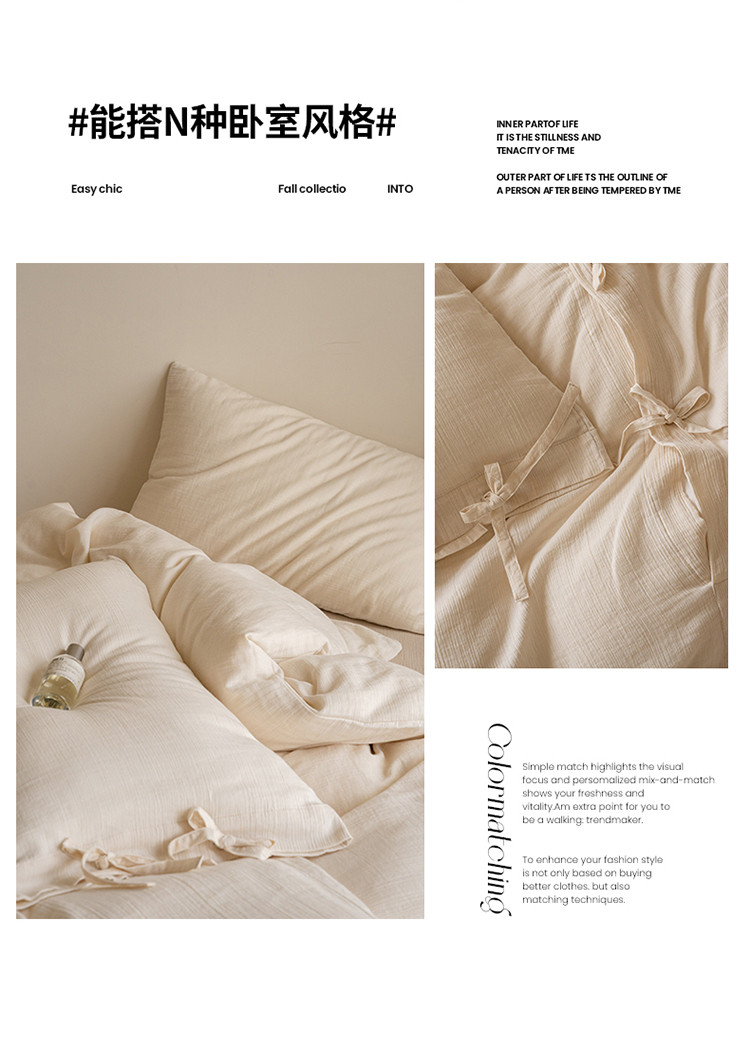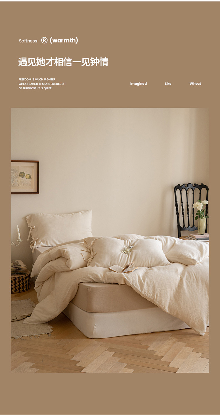 (总) 华超针织 2022新款60支肌理浮雕亲柔纱四件套,布莱垦棕绑带款,可可淡奶绑带款,摩洛哥灰绑带款,塞纳河咖绑带款,布莱垦棕纽扣款,可可淡奶纽扣款,摩洛哥灰纽扣款,塞纳河咖纽扣款