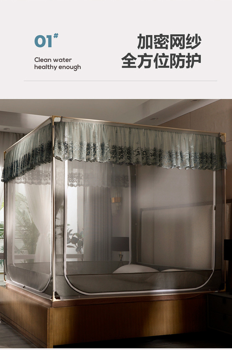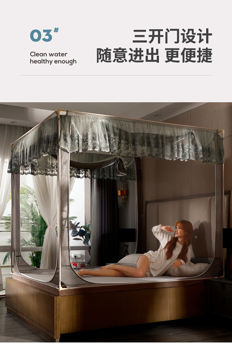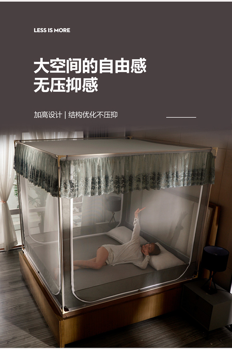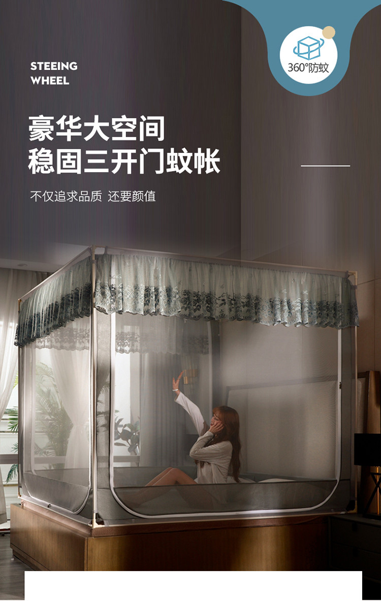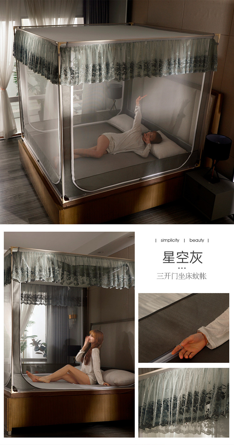 (总)飞轮海蚊帐 2023新款三开门落地遮光蚊帐-L-93,高级灰,芥末绿,奶油黄,香槟