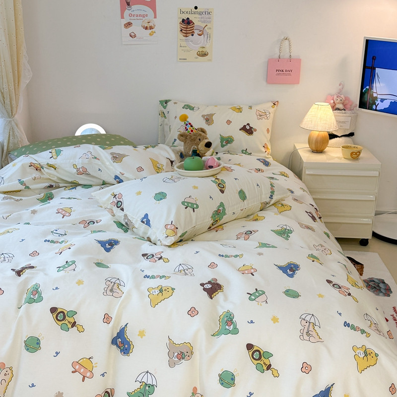 (总)昔可 2023新款学生季卡通普通款四件套,彩色气球熊,彩条恐龙,憨憨熊,花蜜小兔,蘑菇兔,圈圈草莓,蔬菜小兔,郁金香小萌狗