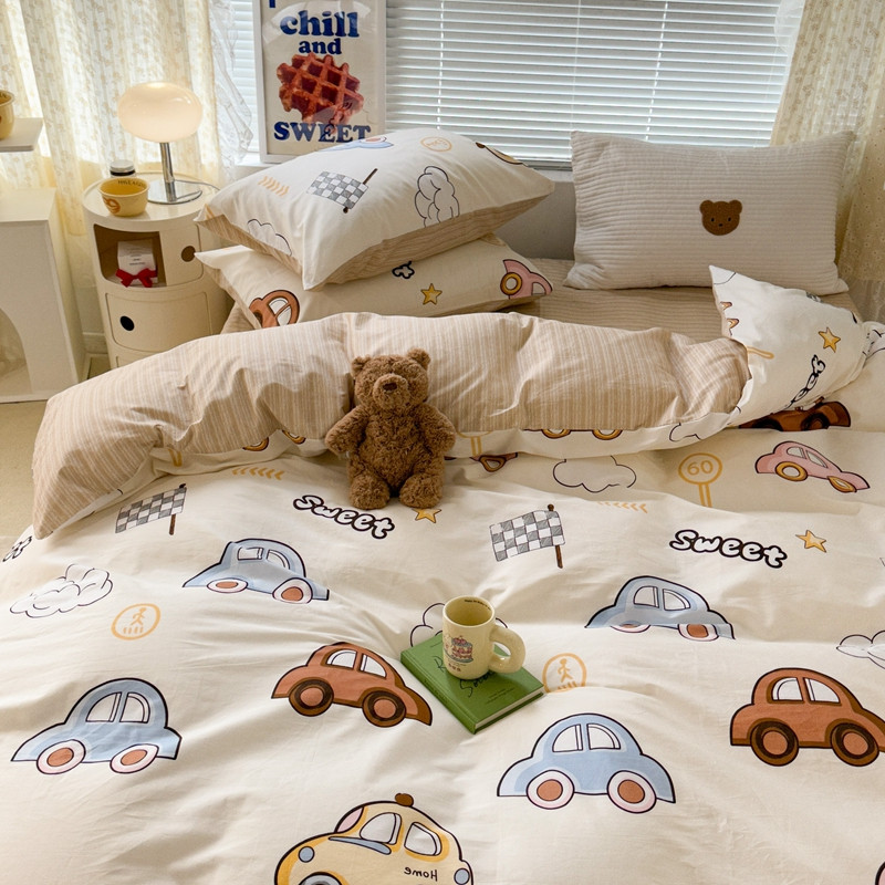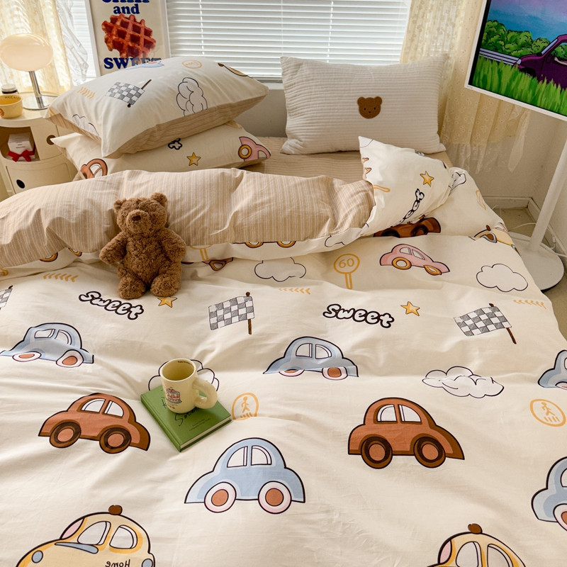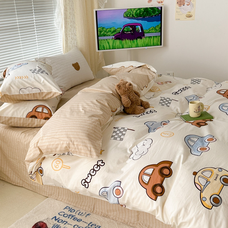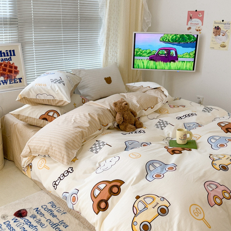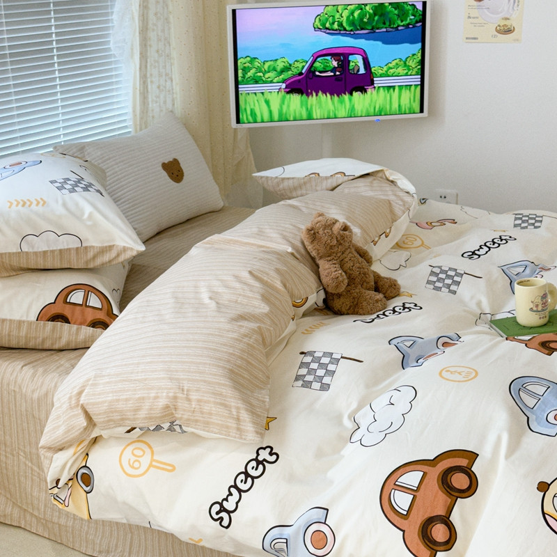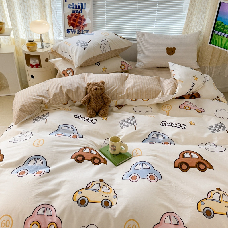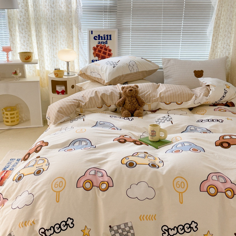 昔可 2023新款全棉卡通系列四件套 彩色小汽车
