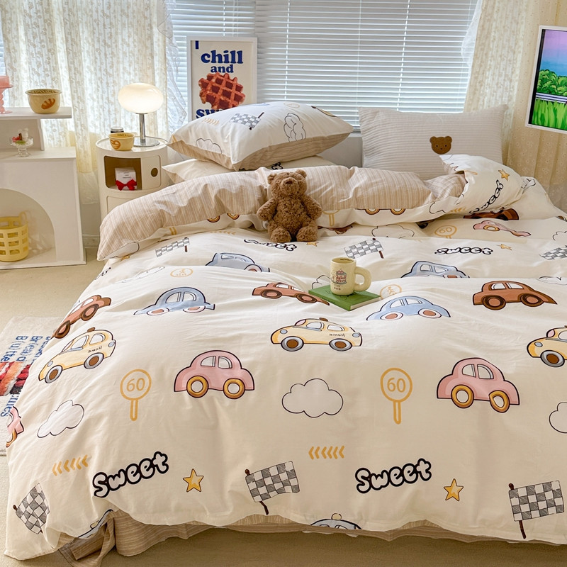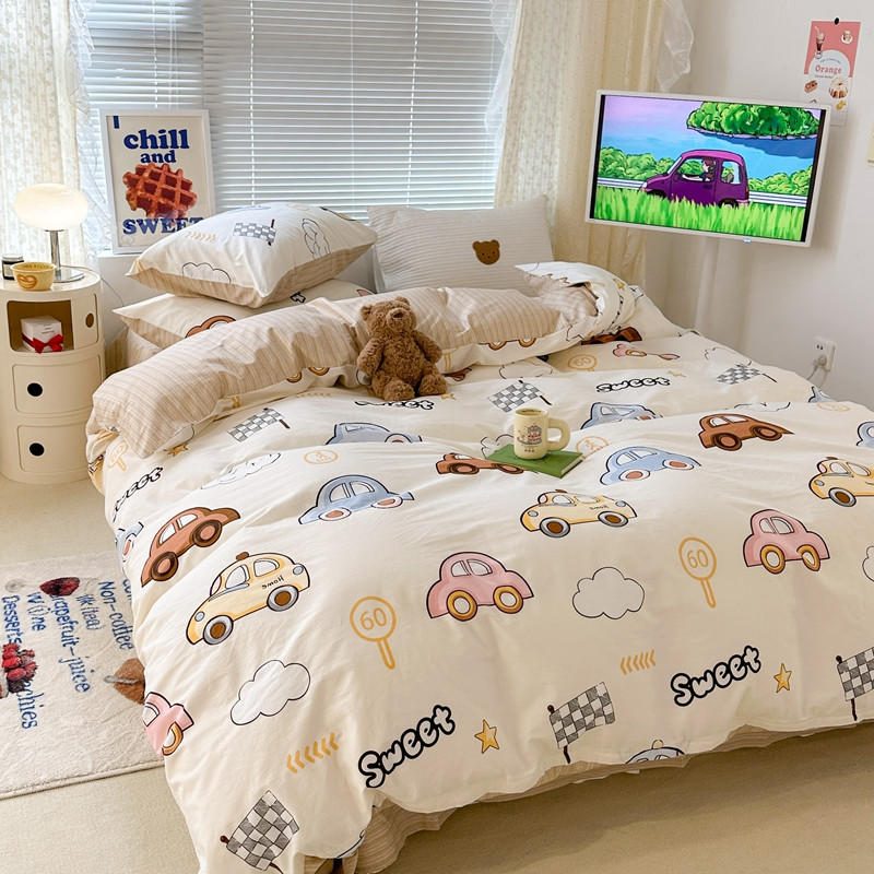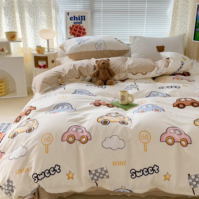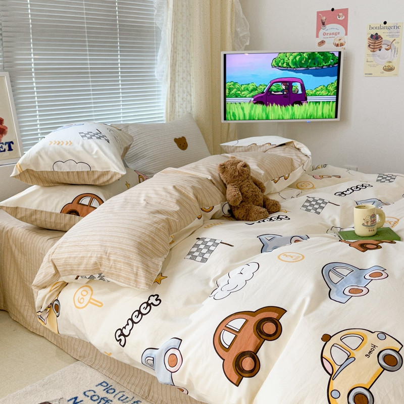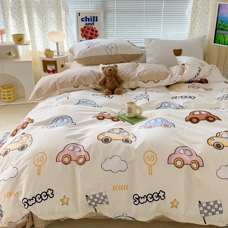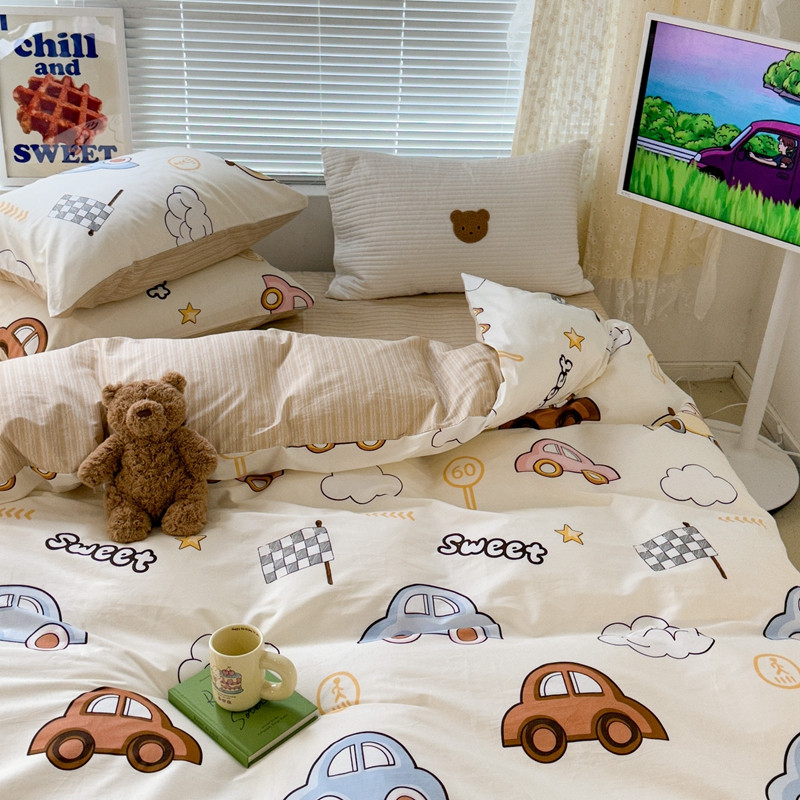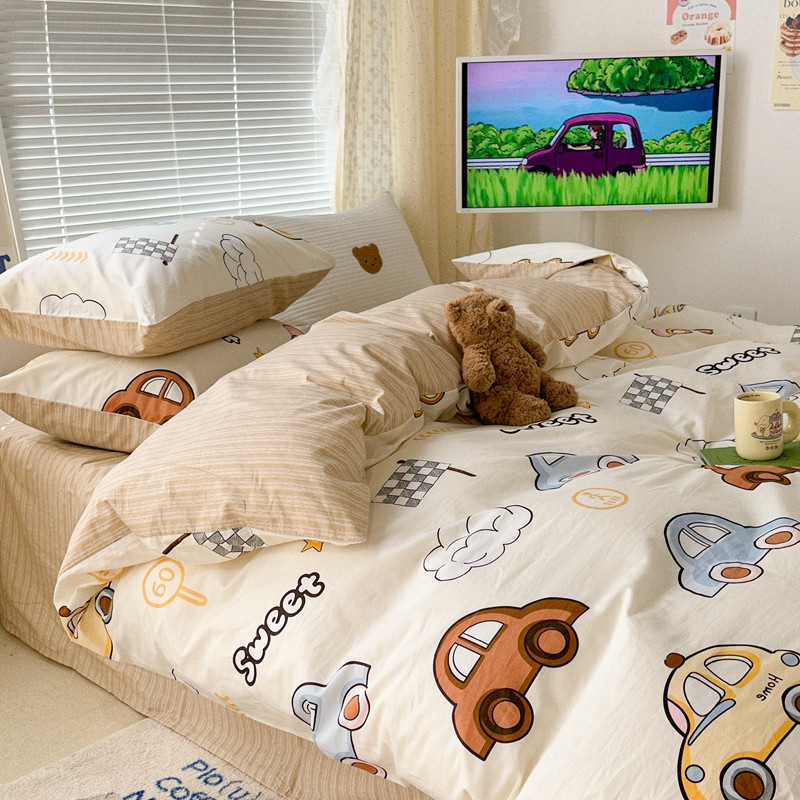 昔可 2023新款全棉卡通系列四件套 彩色小汽车