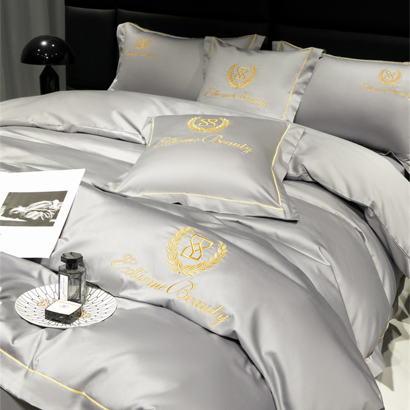 • 91家纺网 家纺一手货源 找家纺 八十八 2023新款长绒棉绣花博吉系列被套 博吉-碳木灰