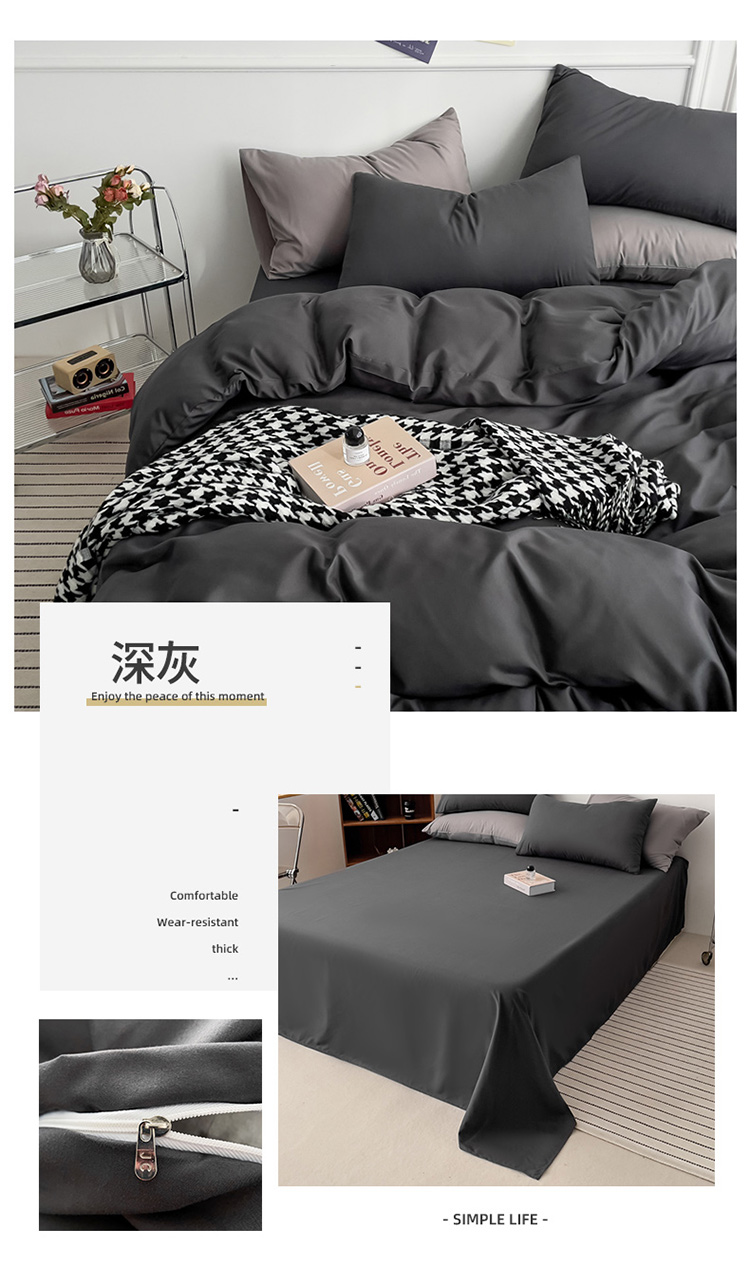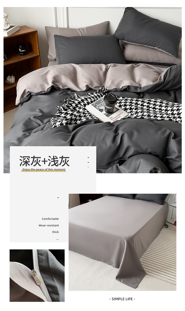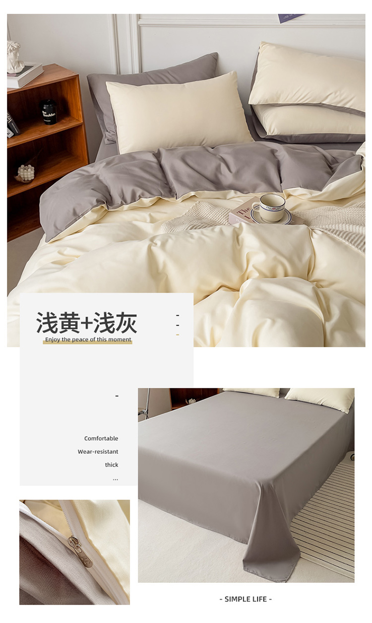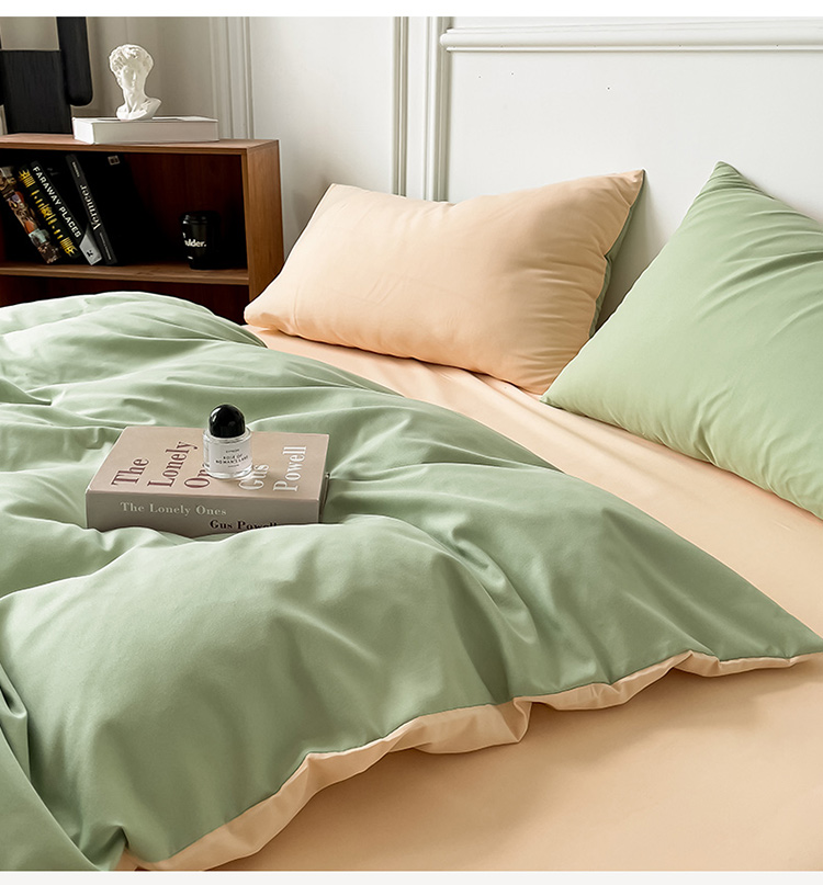 (总)棠颂 2023春夏新款水洗棉亲肤纯色双拼四件套