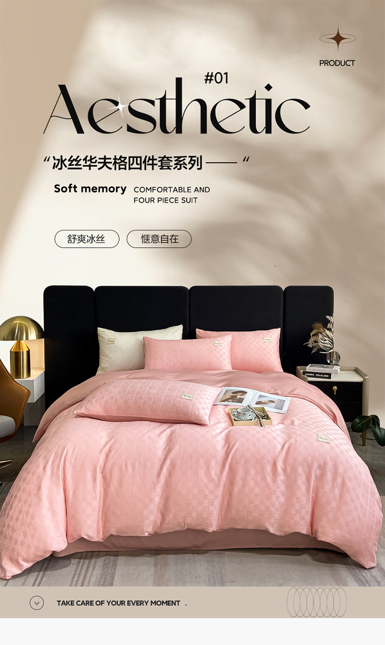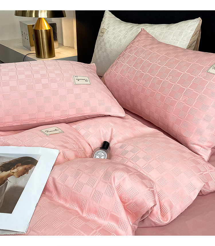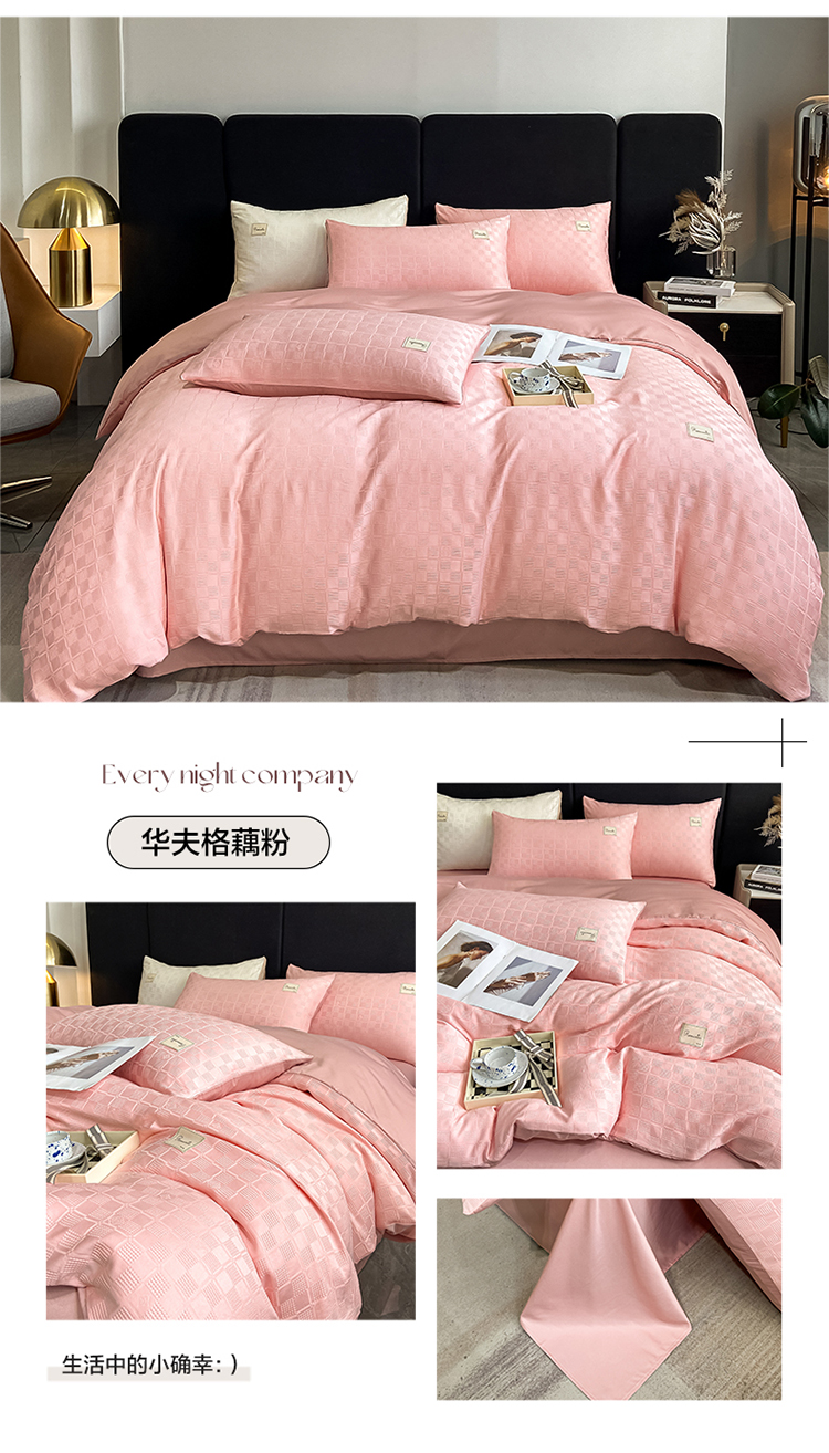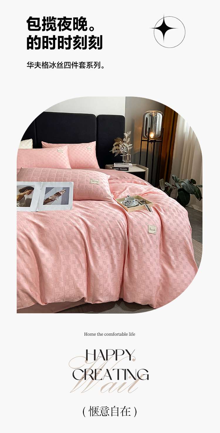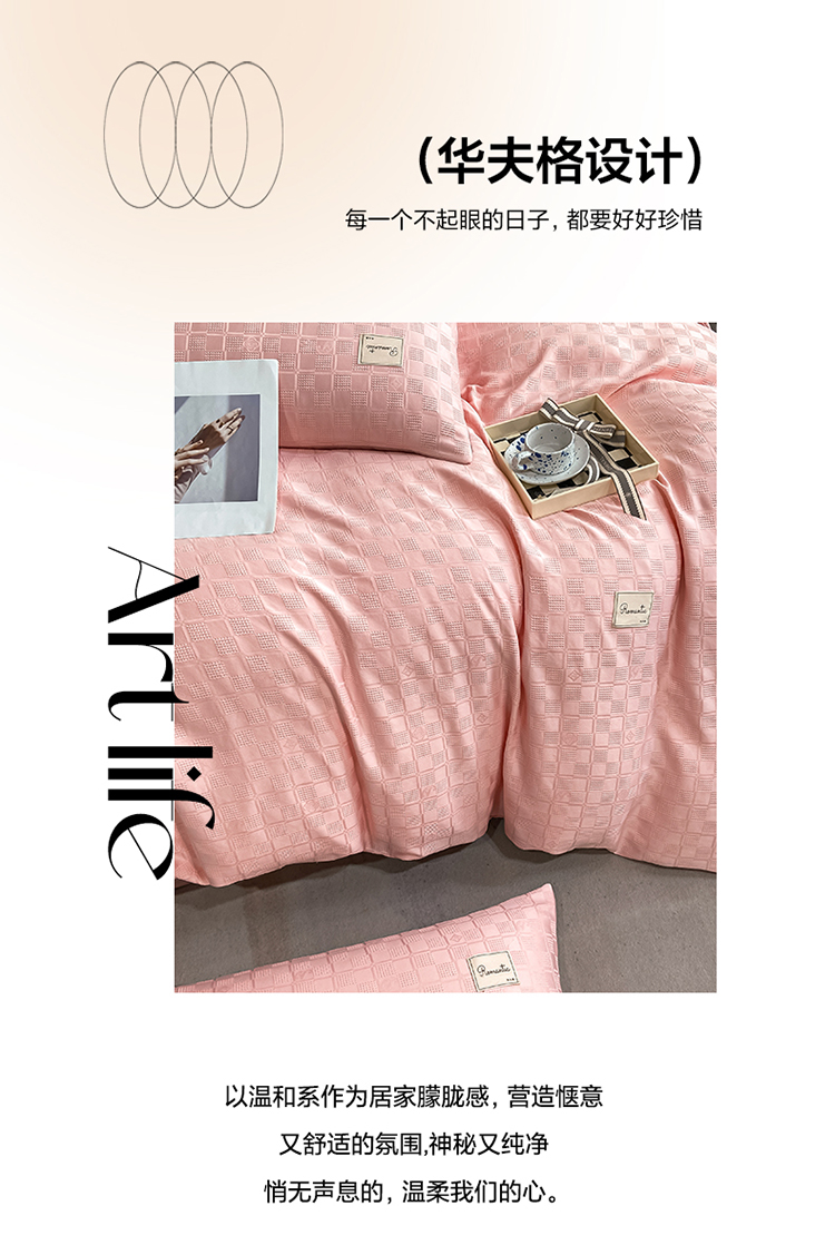 金麦 2023新款冰丝华夫格四件套系列 华夫格藕粉