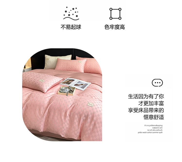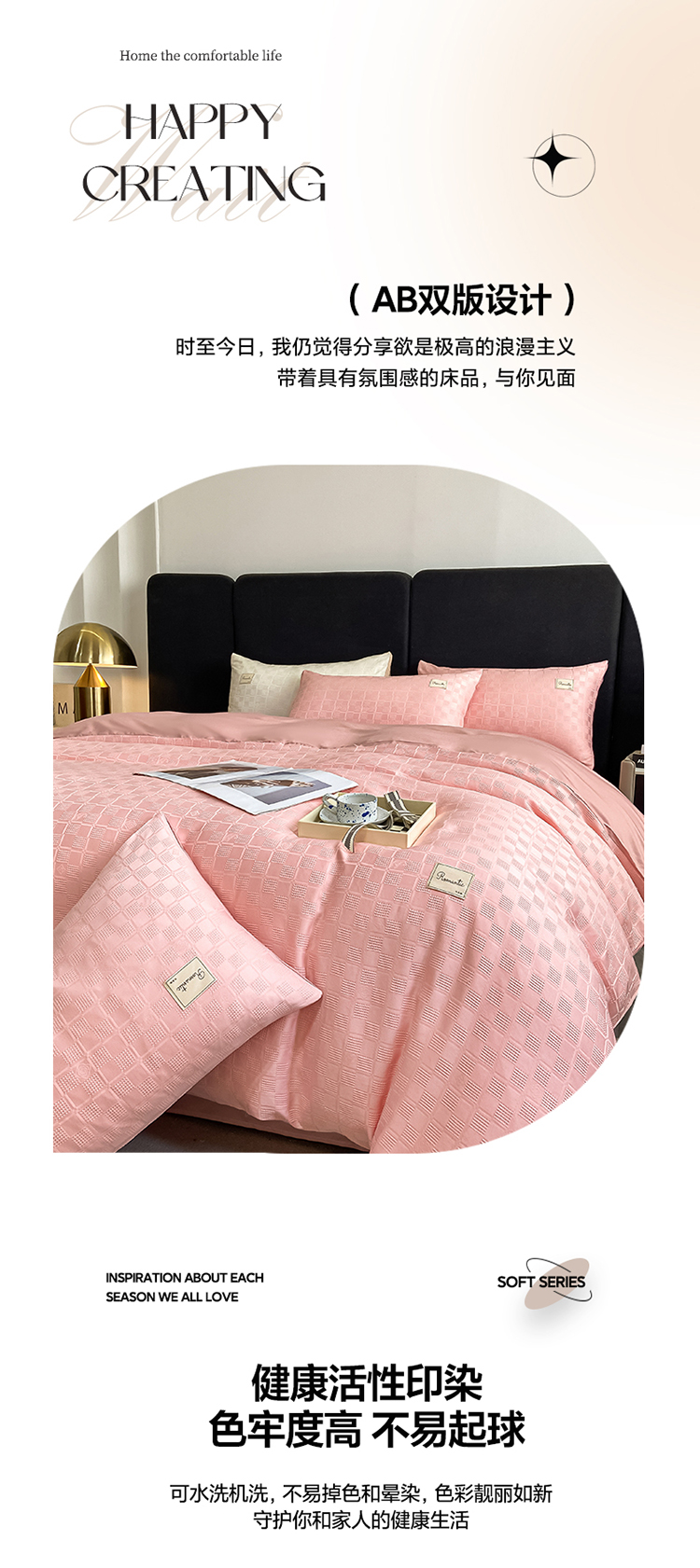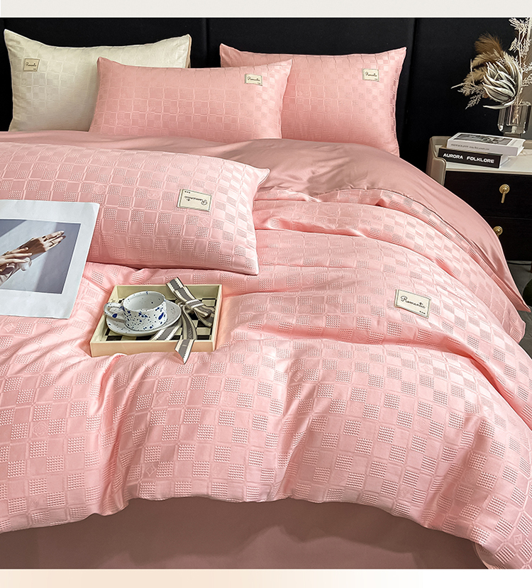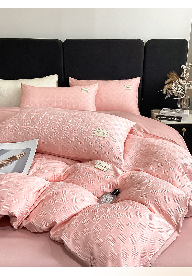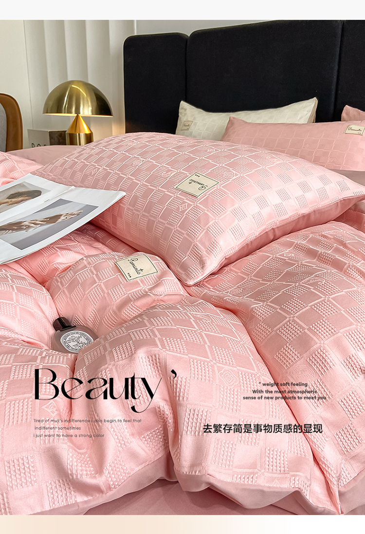 金麦 2023新款冰丝华夫格四件套系列 华夫格藕粉