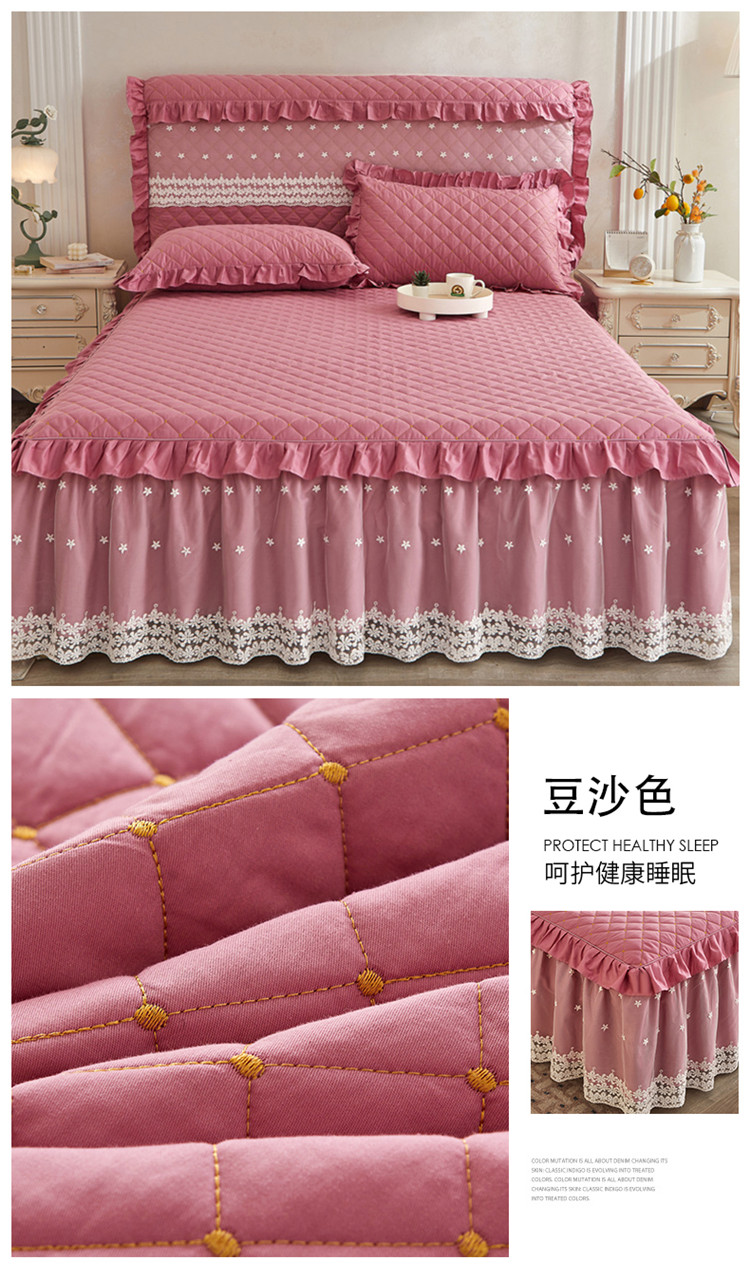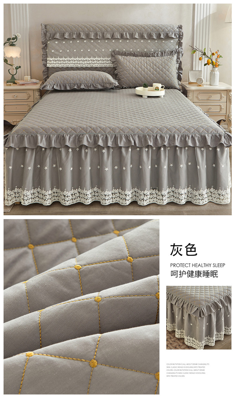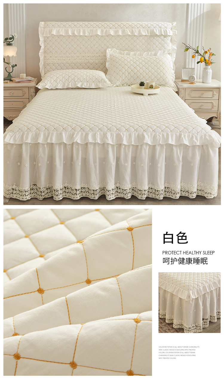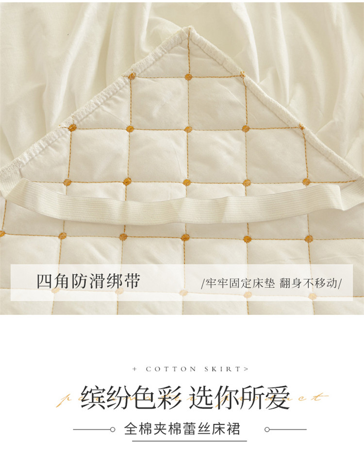 (总)十个点家纺 2025新款千鸟格磨毛绗缝夹棉纯色花边床裙三件套,经典白色,经典兰色,经典浅灰,经典浅驼,经典深灰,经典玉粉