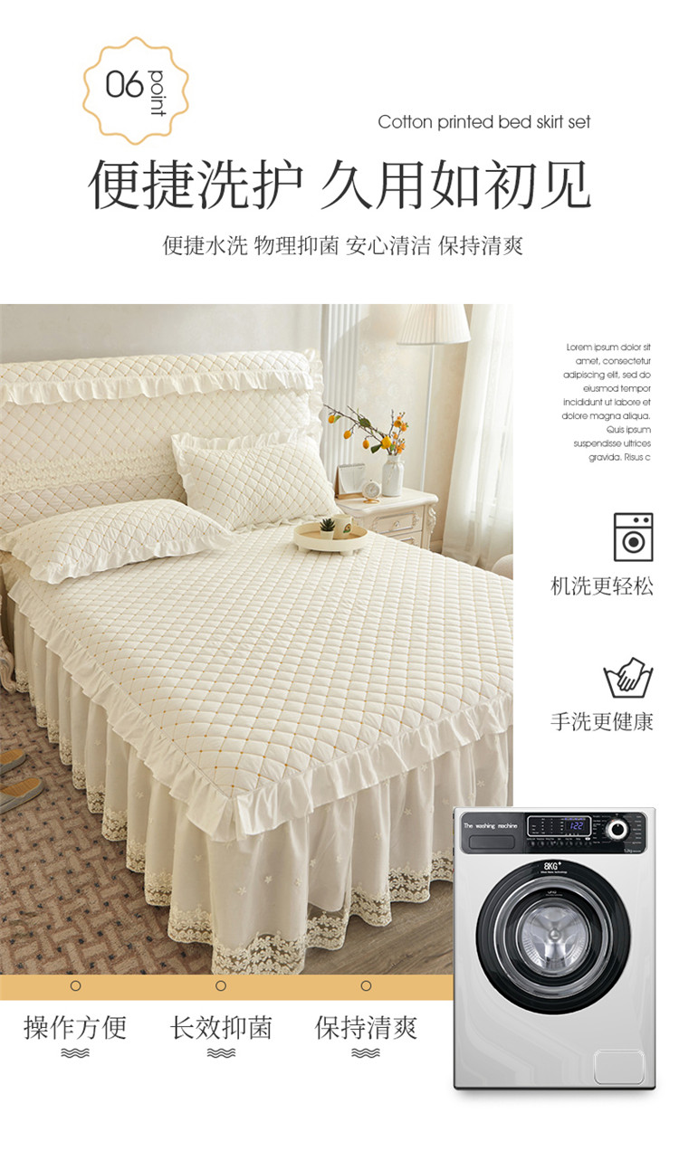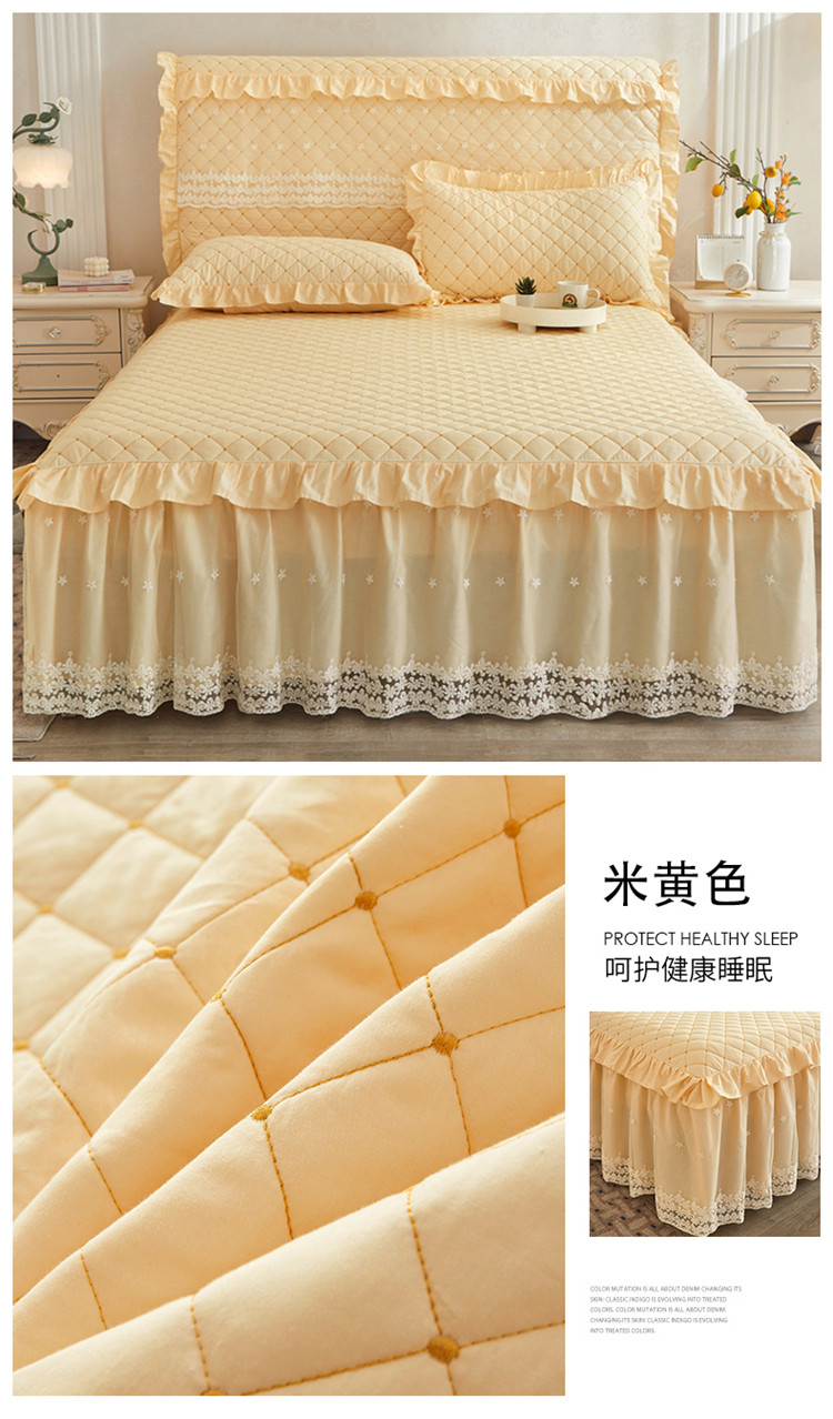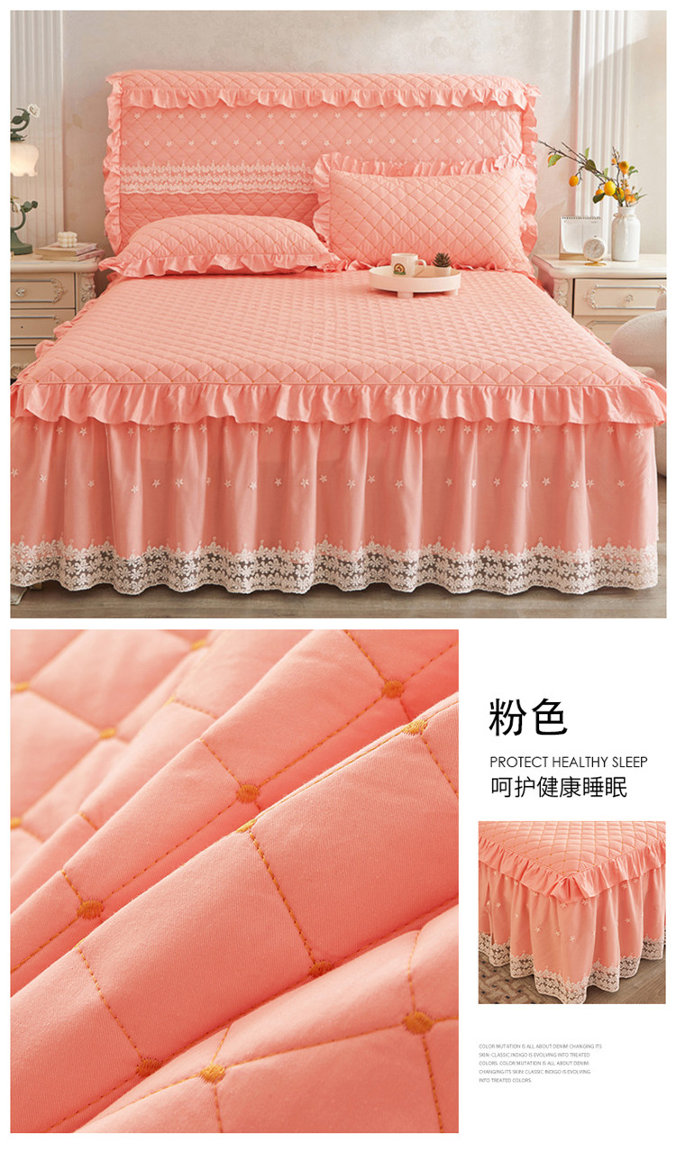 (总)十个点家纺 2025新款千鸟格磨毛绗缝夹棉纯色花边床裙三件套,经典白色,经典兰色,经典浅灰,经典浅驼,经典深灰,经典玉粉