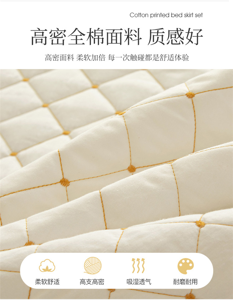 (总)十个点家纺 2025新款加厚磨毛木棉床裙三件套-格小格系列,格小格-粉,格小格-金驼,格小格-咖,格小格-兰,格小格-绿,格小格-玉