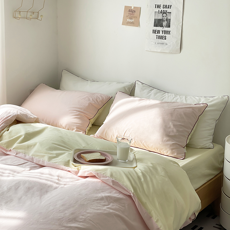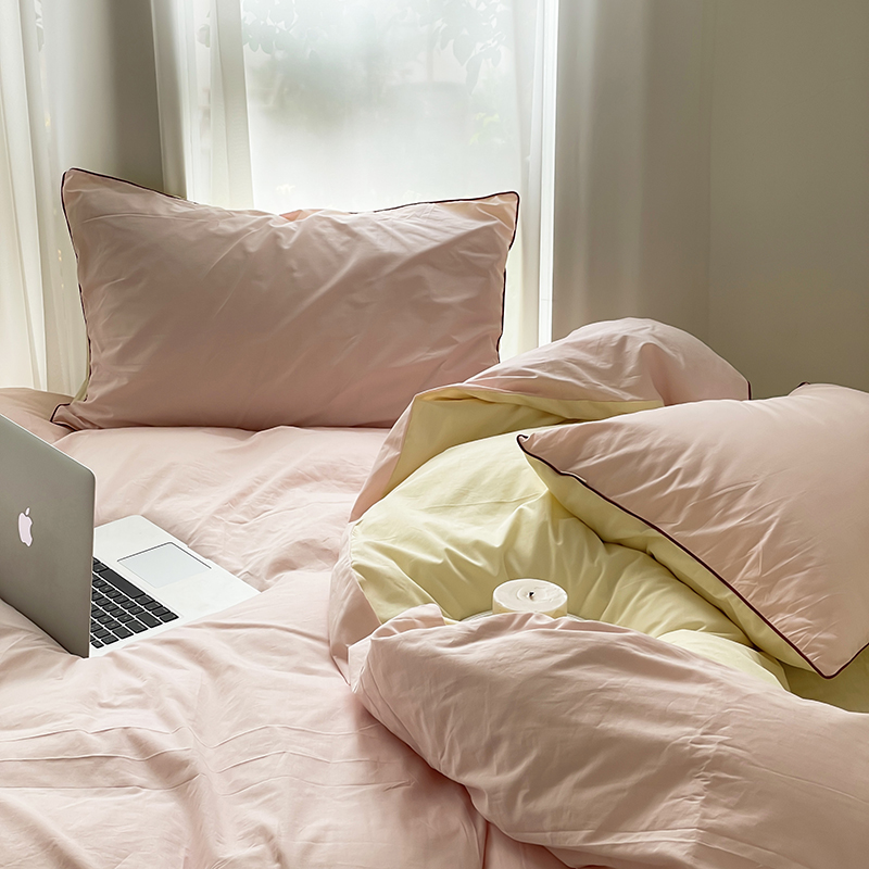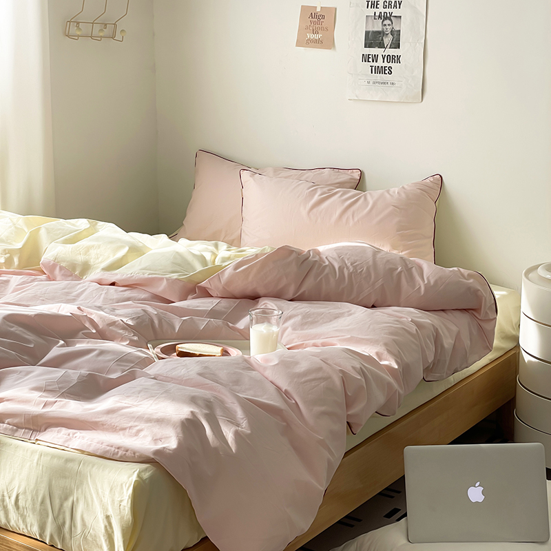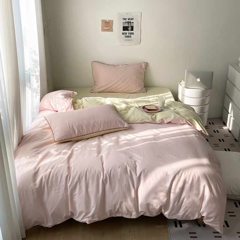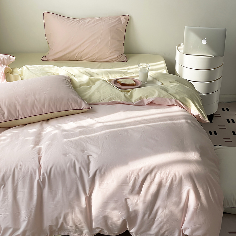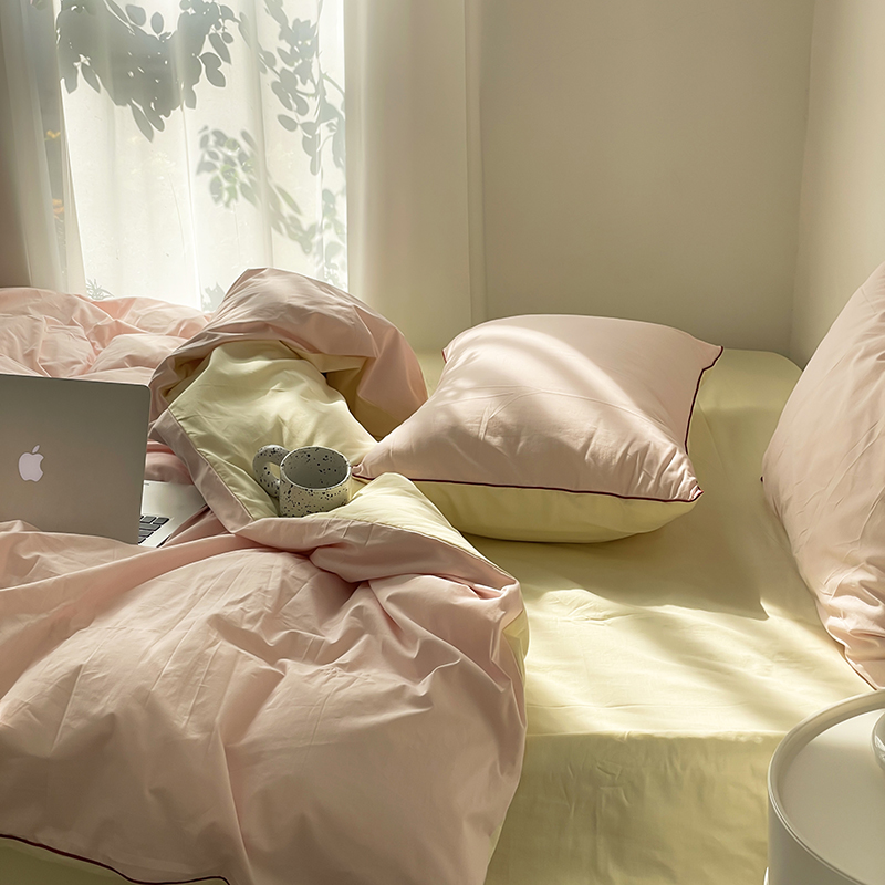 当前位置: 91家纺网 > 商品网购 > 床品套件 > 四件套 > 全棉普通四件套 > 时年 2023新款40支全棉水洗棉嵌绳款四件套--拍法一 樱花粉