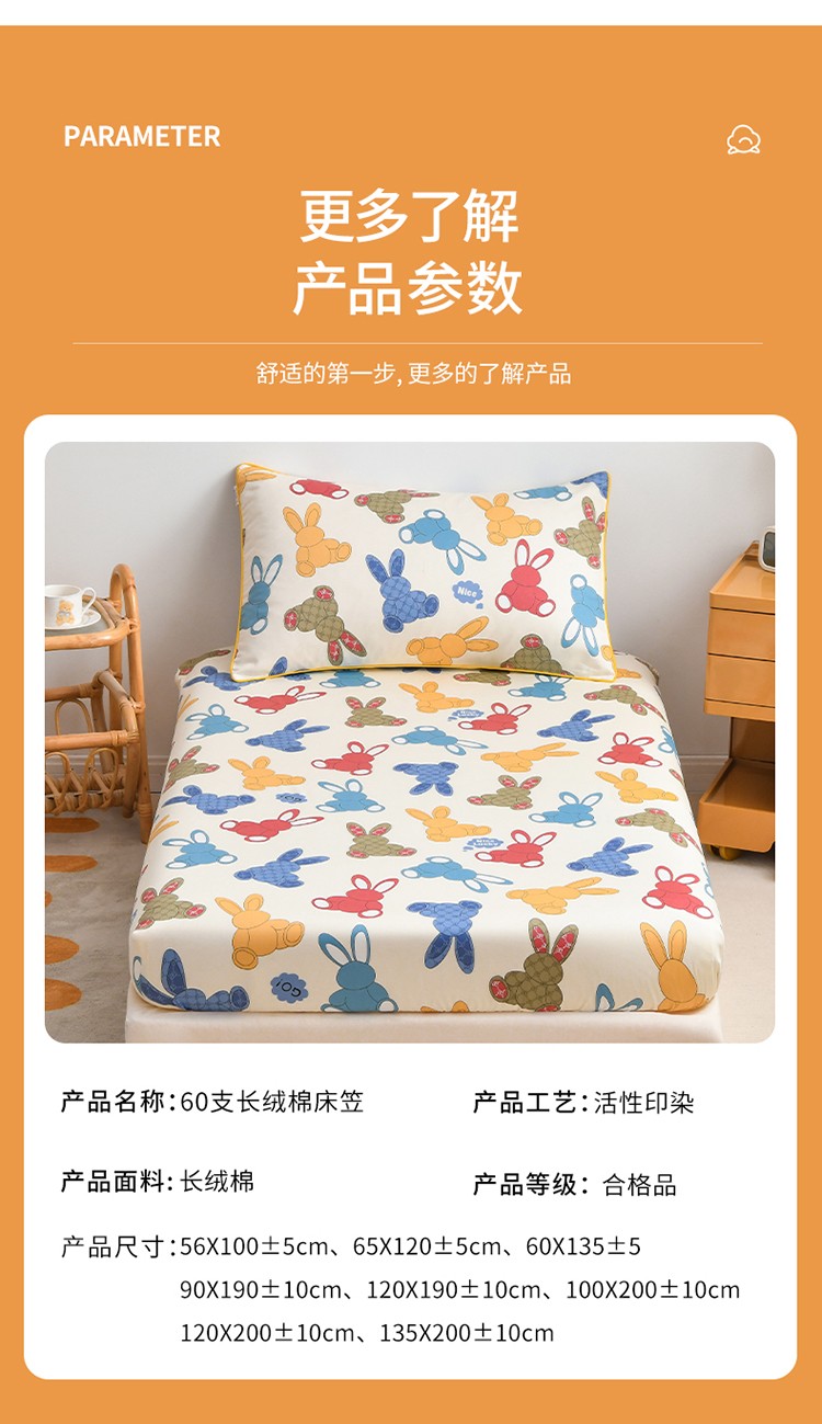 商品名称:ds生活馆 2025新款幼儿园学生60支贡缎长绒棉纯棉单床笠 波波兔