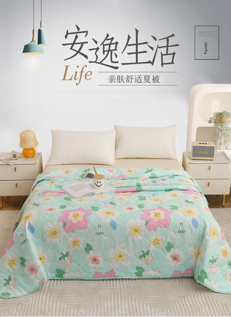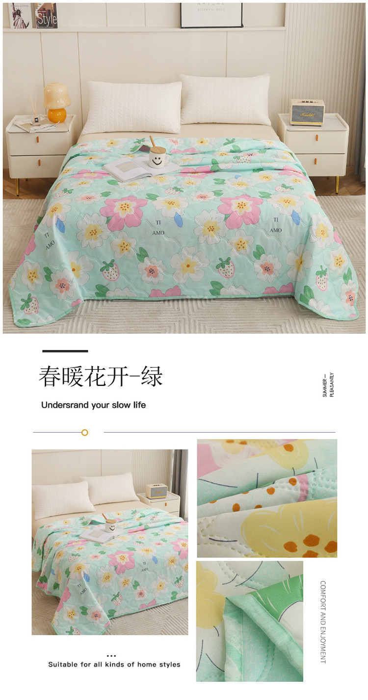 欧喜璐 2025新款钻石绒夏被空调被超声波压花礼品被 春暖花开-绿