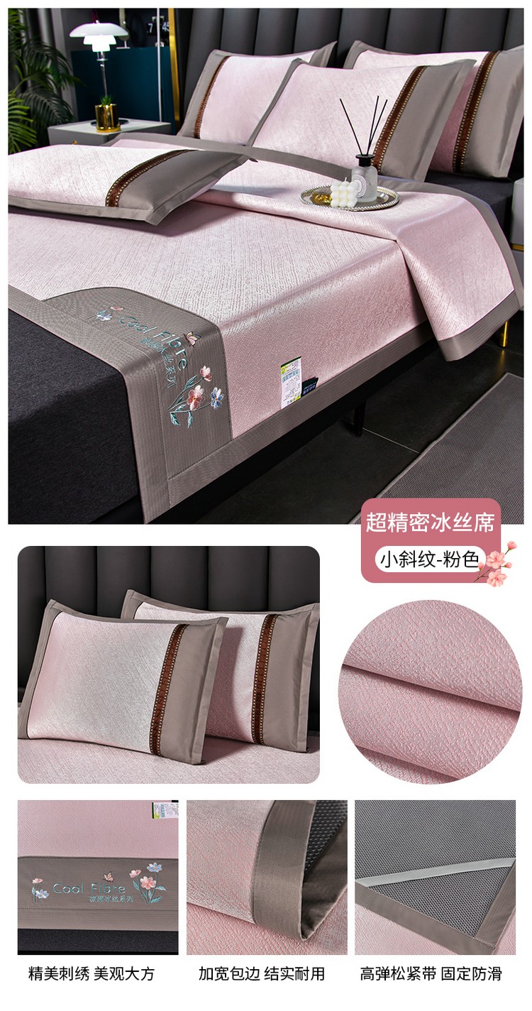 (总)2023新款超精密冰丝席-小斜纹系列-床笠款藤席凉席竹席,粉色,蓝色,绿色,银灰