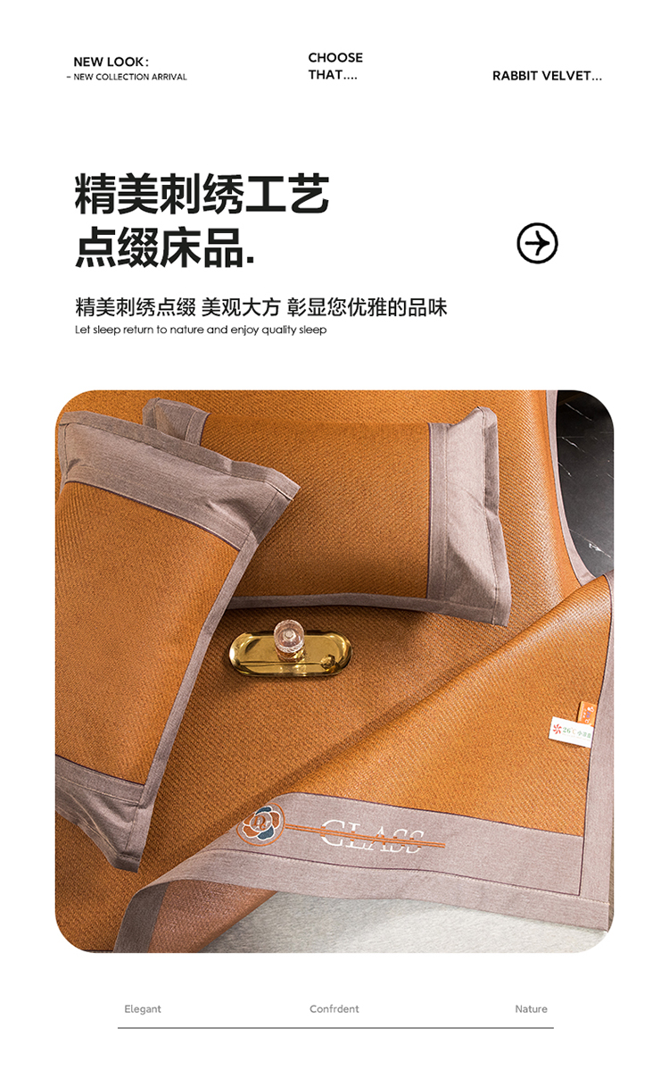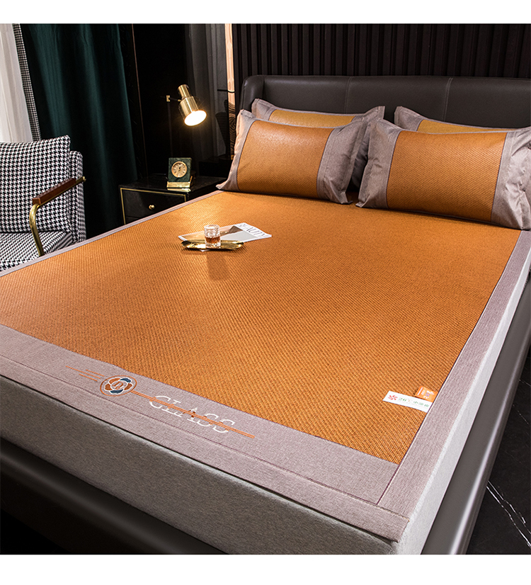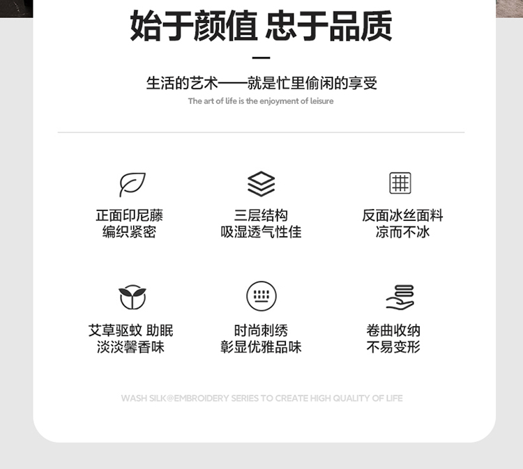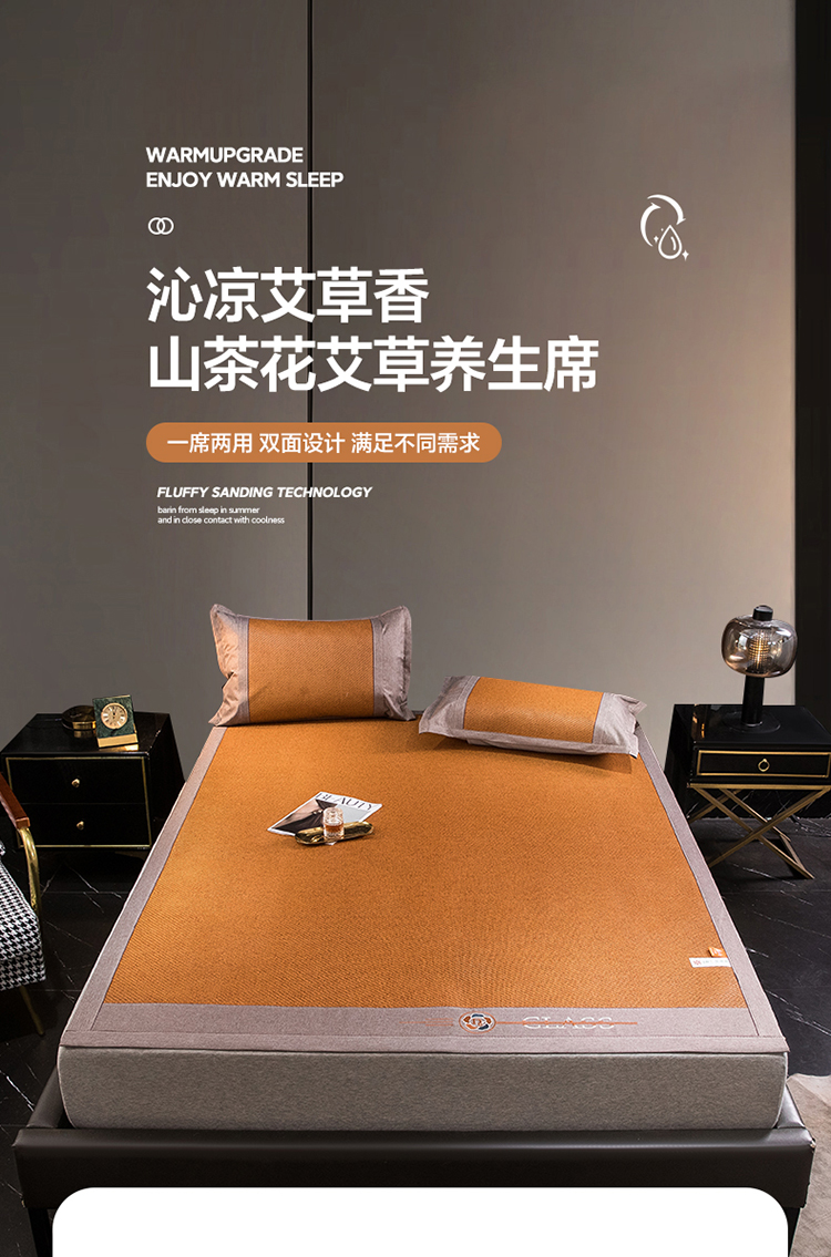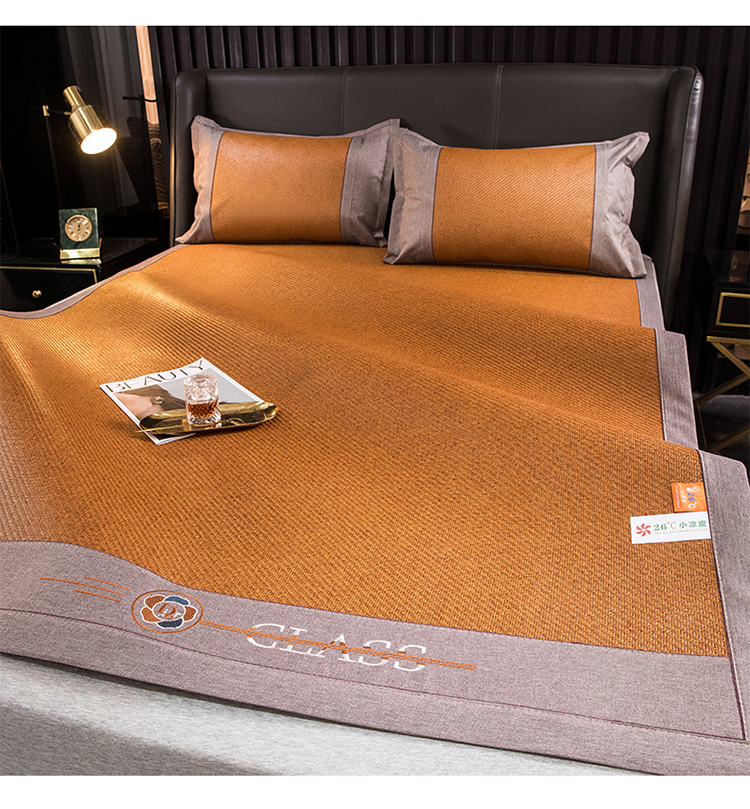 伊被源 2023新款山茶刺绣艾草凉席系列 山茶刺绣艾草经典咖
