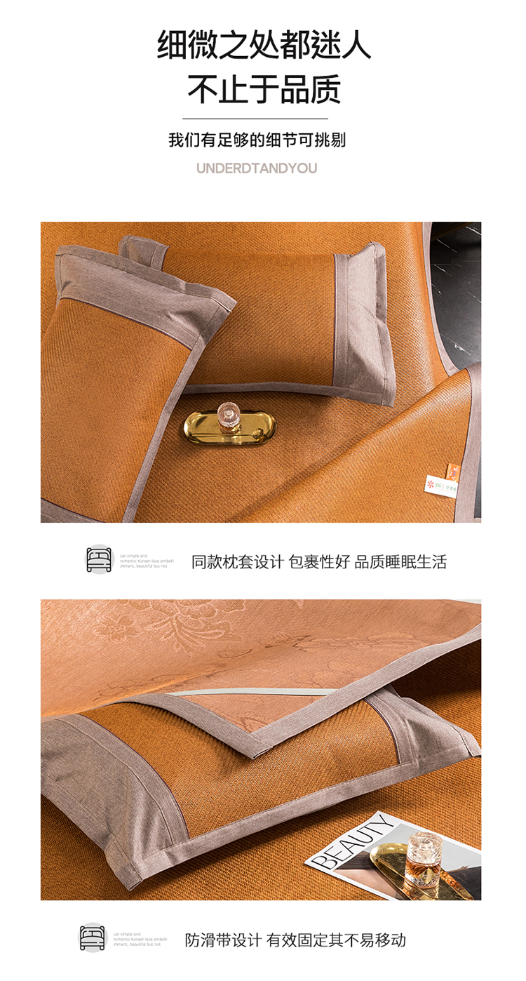 商品名称: 伊被源 2023新款山茶刺绣艾草凉席系列 山茶刺绣艾草经典咖
