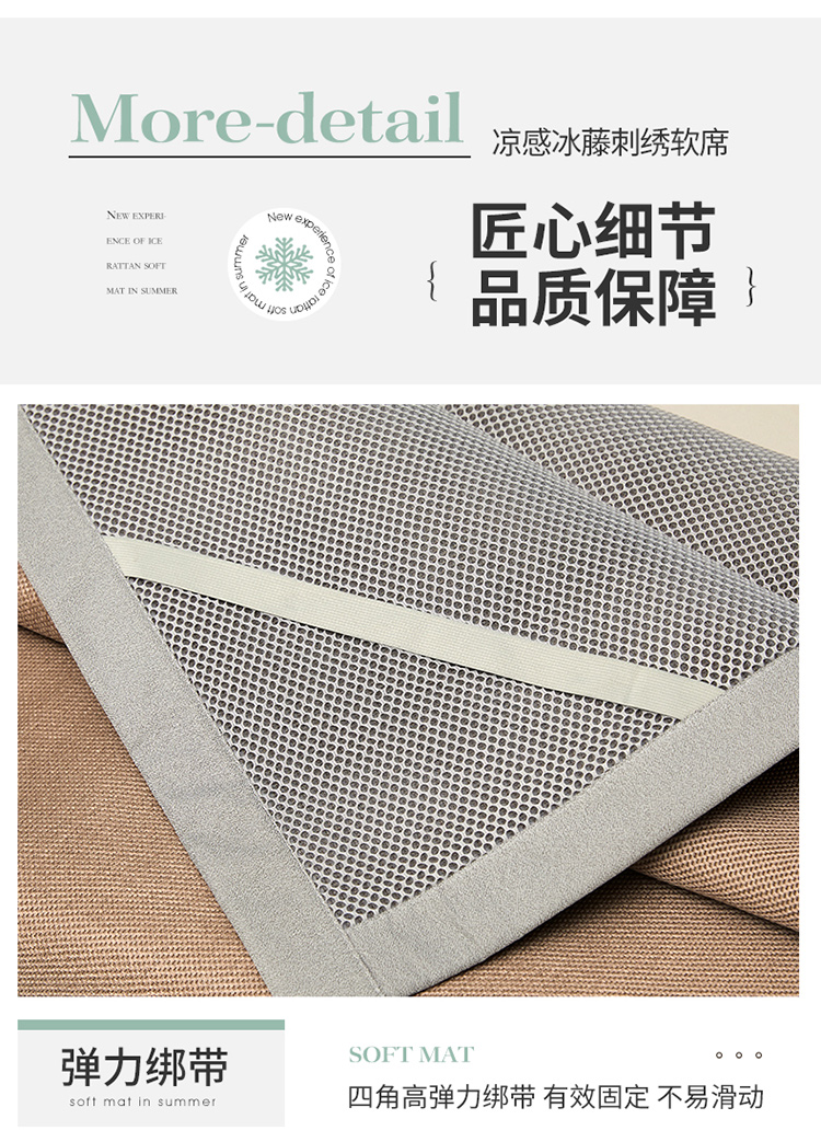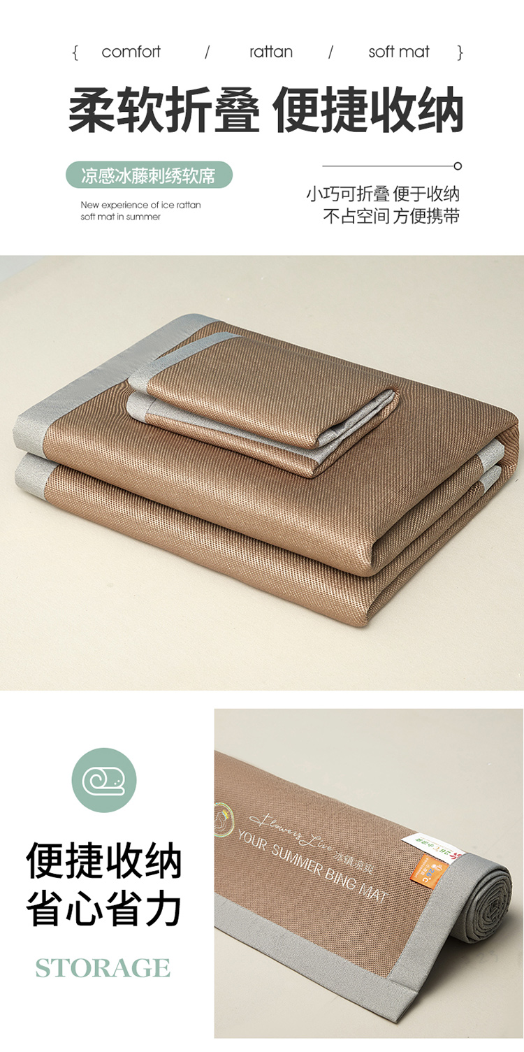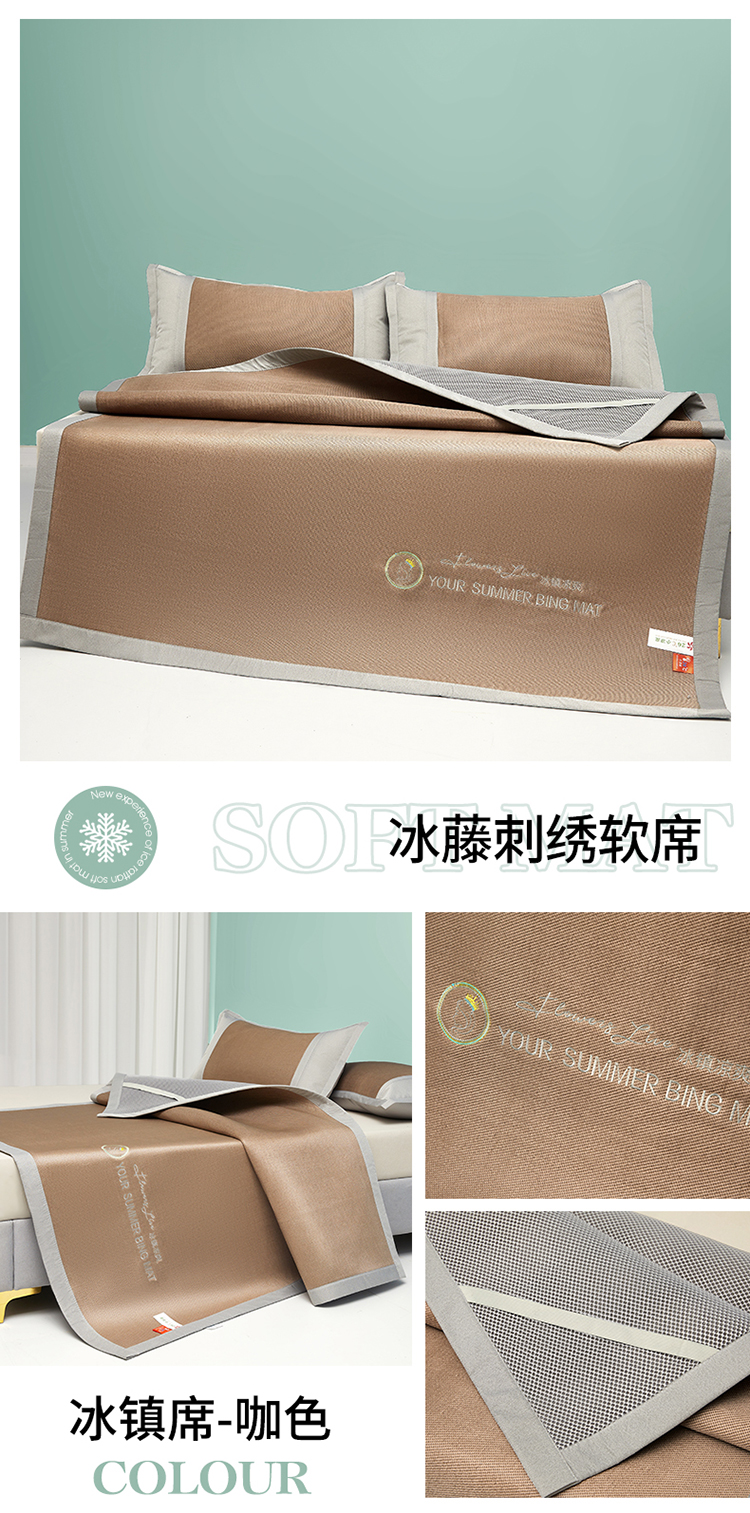 商品名称:伊被源 2023新款凉感冰藤刺绣软席-冰镇席、酷爽席 冰镇席-咖色