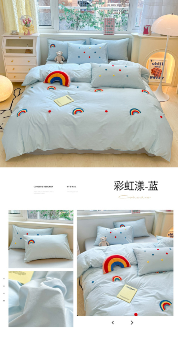 商品名称:寐居2023新款绣花款水洗棉四件套 彩虹漾-蓝