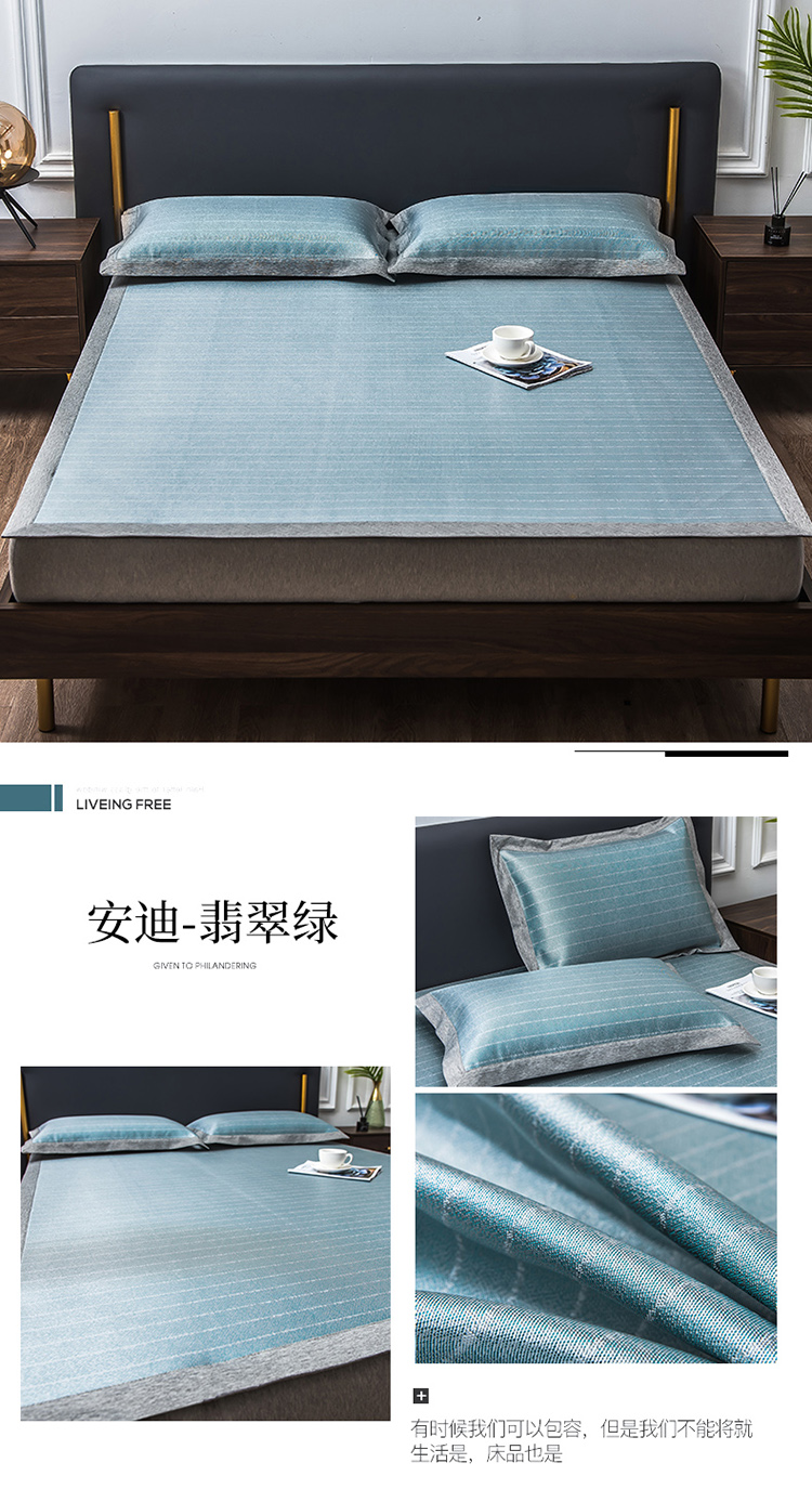 商品名称:1800D提花冰丝凉席床席款三件套 床席款安迪-翡翠绿