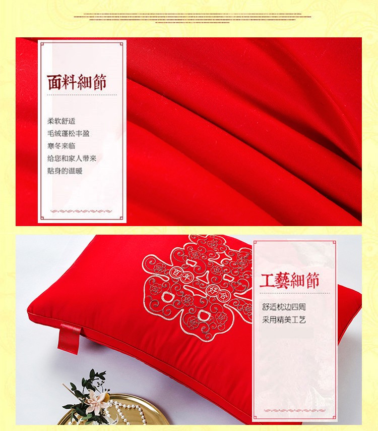 当前位置: 91家纺网 > 商品网购 > 枕头/枕芯/保健枕/颈椎枕 > 普通枕芯 > 瑞莉安 2023新款婚庆枕 大红双喜