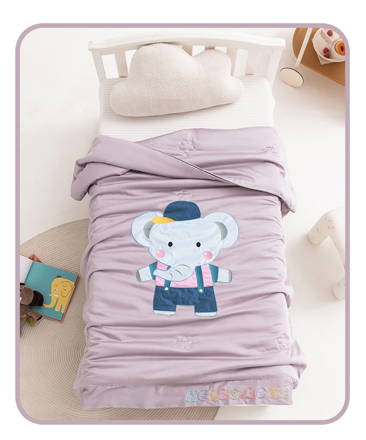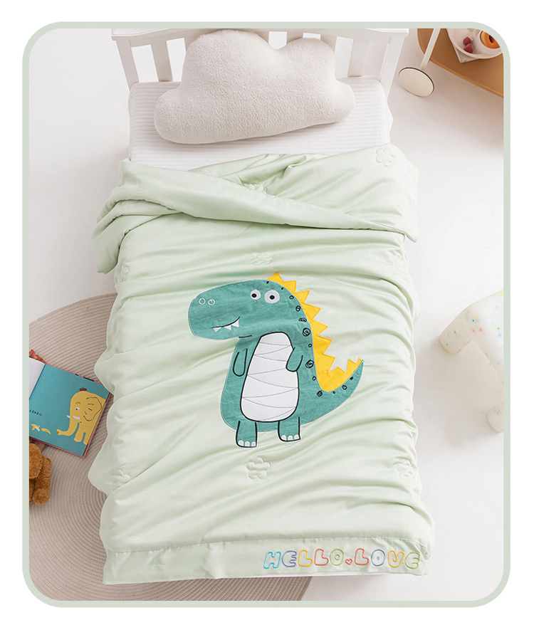 (总)喜多兔儿童家纺 2025春夏新款小软萌贴布绣纱布被,粉色软萌小兔,卡其色软萌小熊,蓝色软萌小象,绿色软萌恐龙,组合图仅供展示