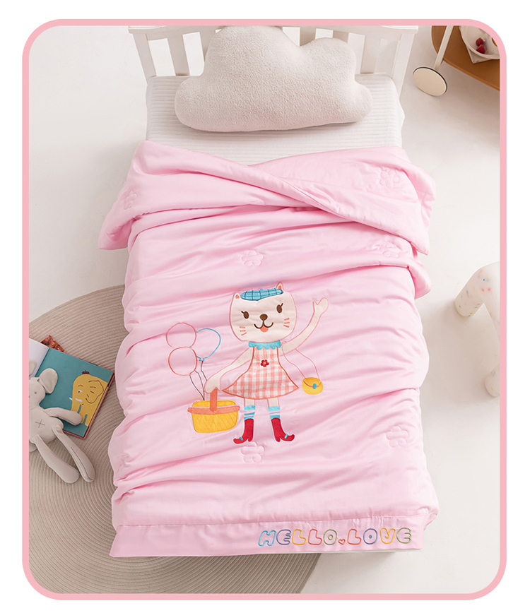 (总)喜多兔2025新款高精密人字棉贴布绣奶里奶气夏被夏凉被,粉色奶气小兔,黄色奶气小狗,咖色奶气小熊,蓝色奶气小象,绿色奶气小猫