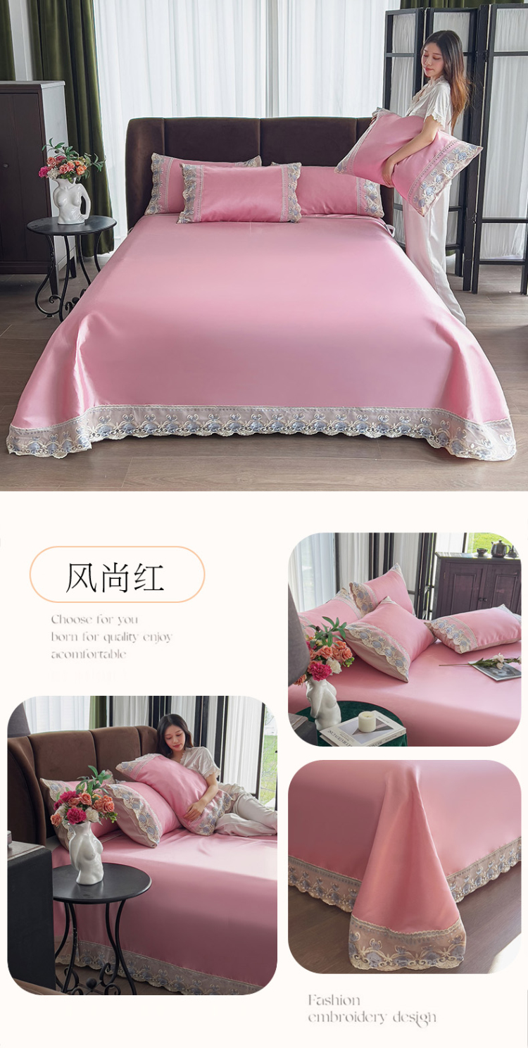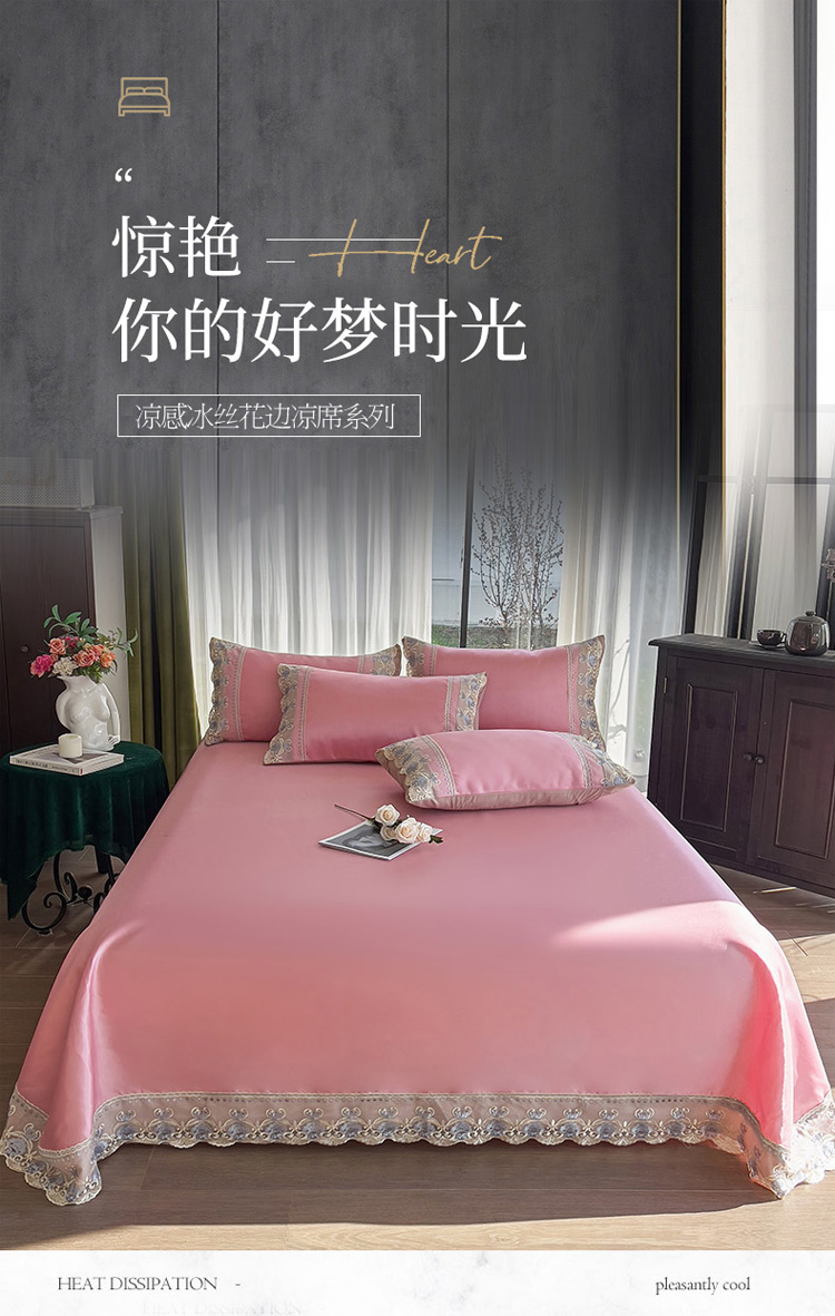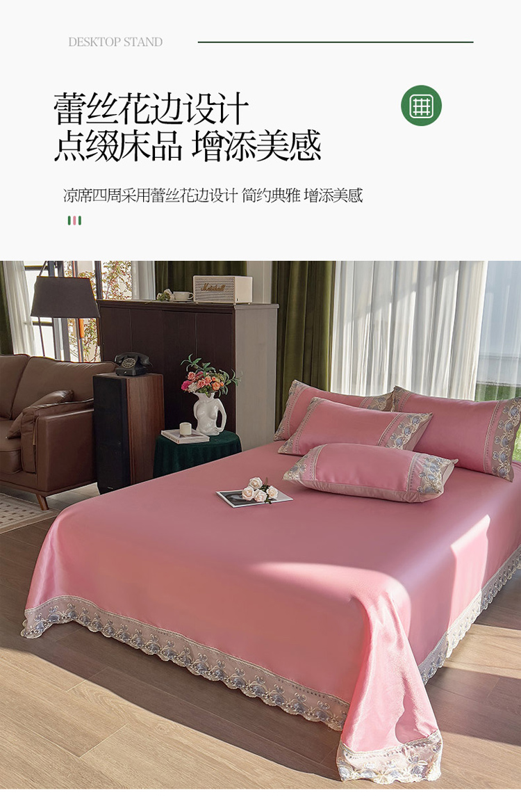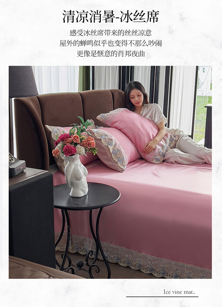 商品名称:眠博士 2023新款凉感冰丝花边款凉席套件 风尚红