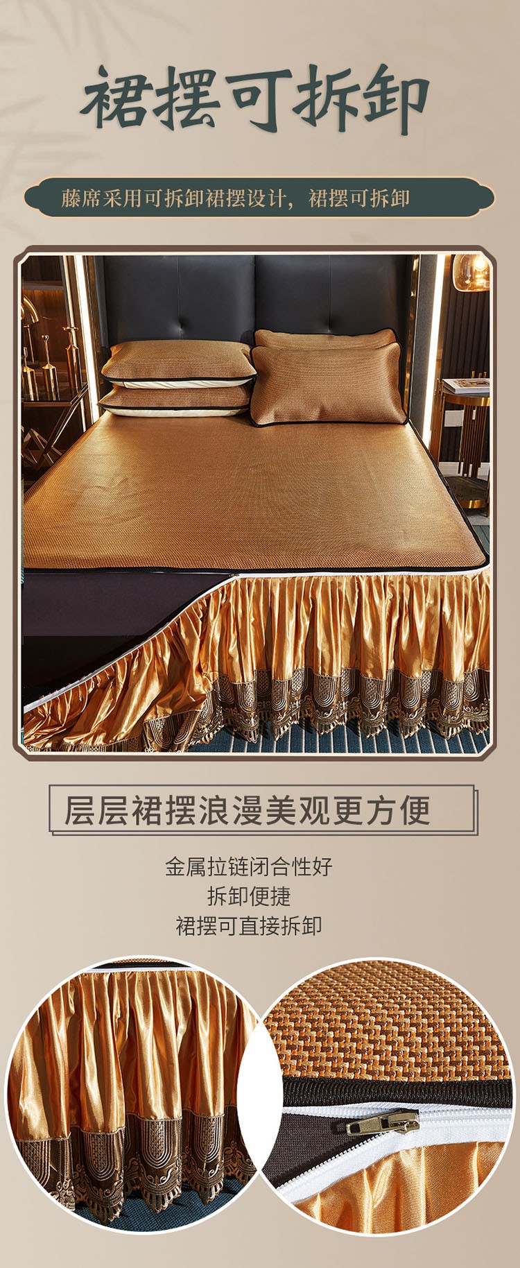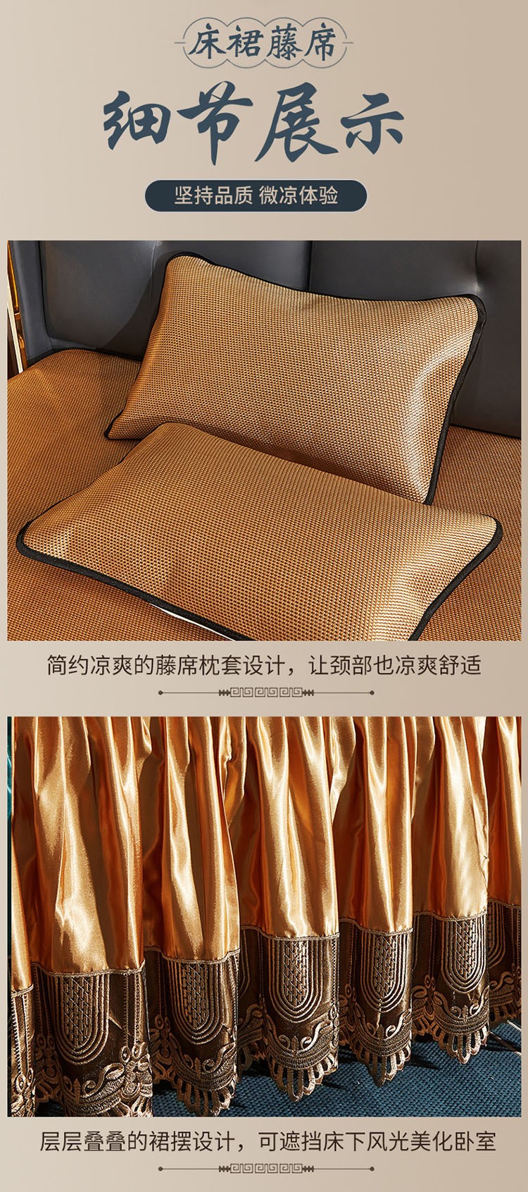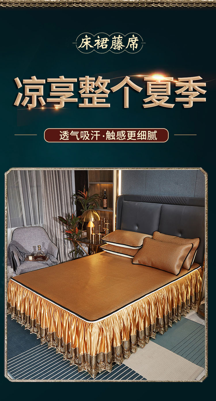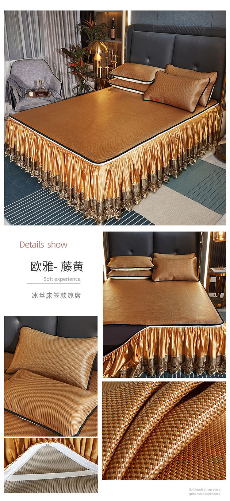 商品名称:恋尚 2024新款冰藤软凉席床裙款三件套(可脱卸) 欧雅- 藤黄