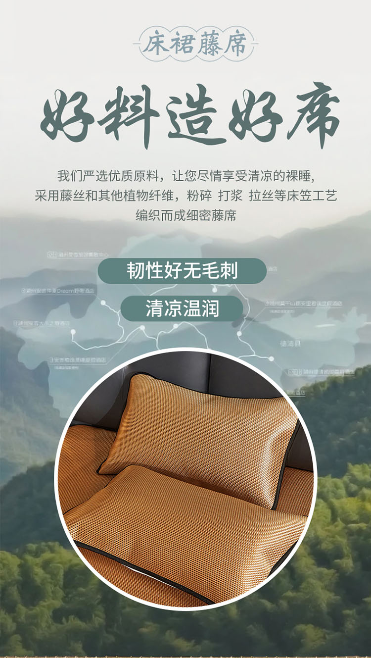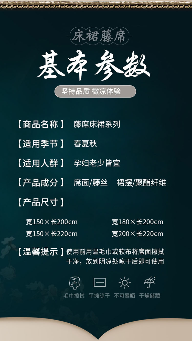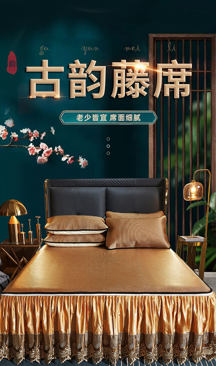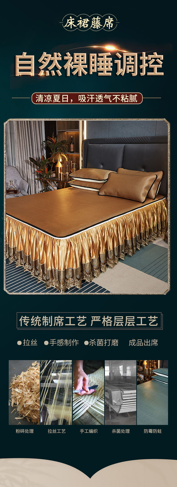 商品名称:恋尚 2024新款冰藤软凉席床裙款三件套(可脱卸) 欧雅- 藤黄
