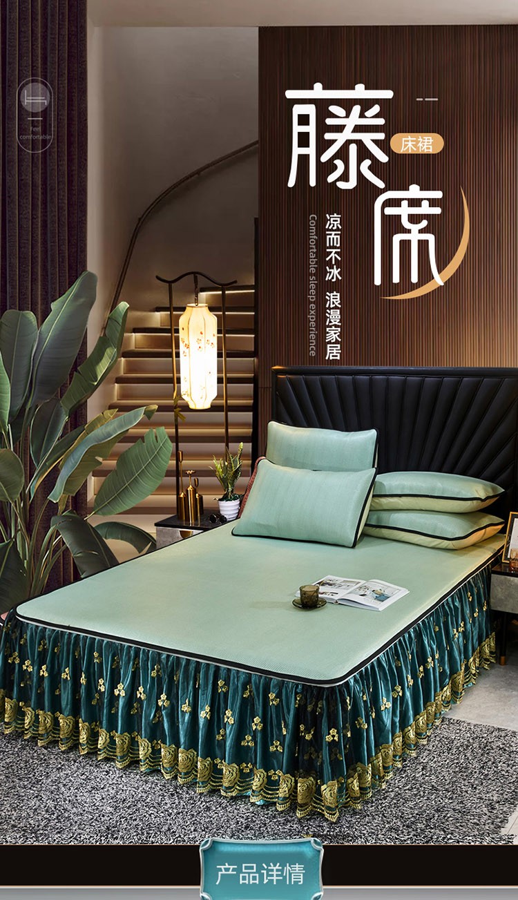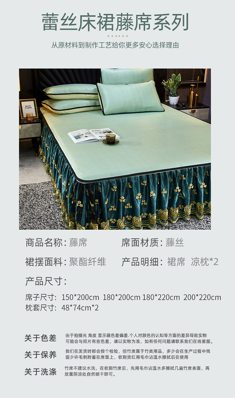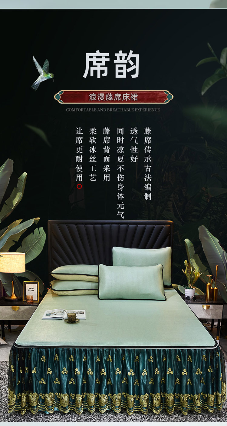商品名称:恋尚 2024新款冰藤软凉席床裙款三件套(可脱卸) 萝蔓-芸青