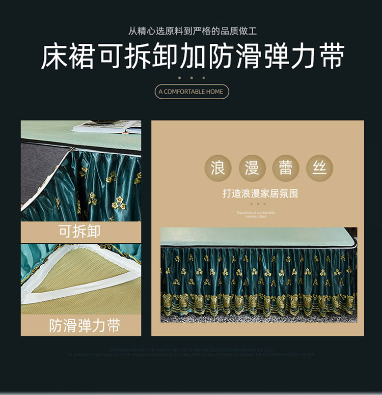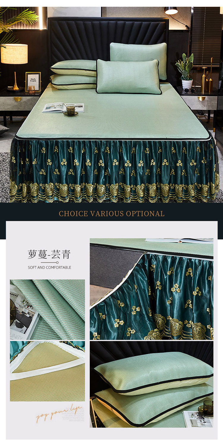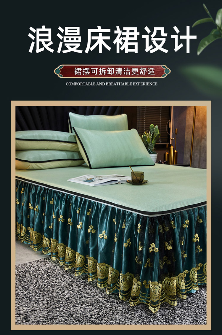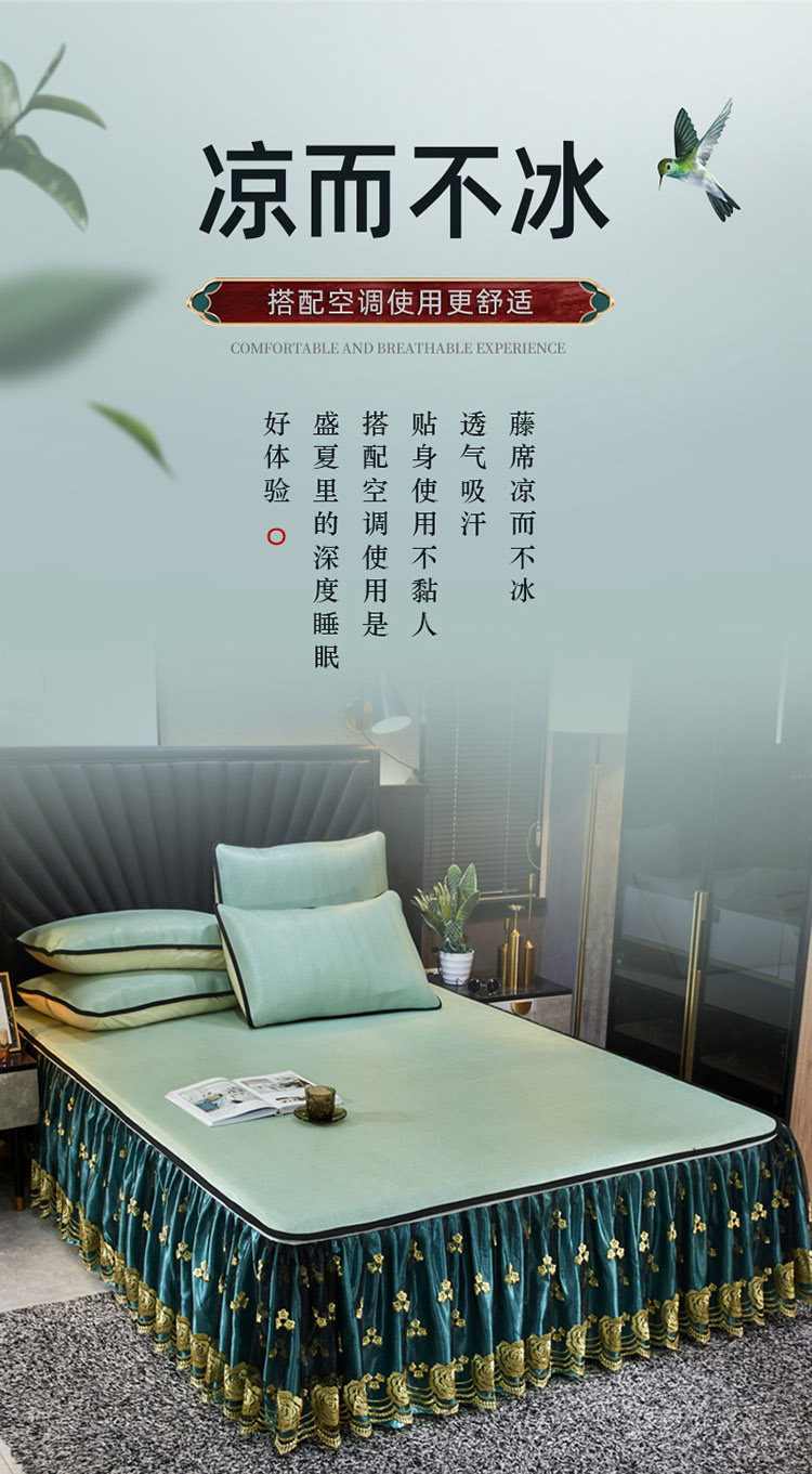 商品名称:恋尚 2024新款冰藤软凉席床裙款三件套(可脱卸) 萝蔓-芸青