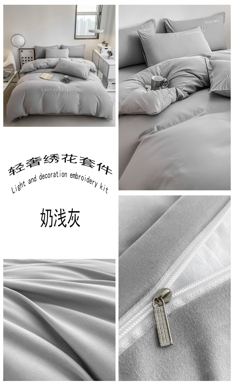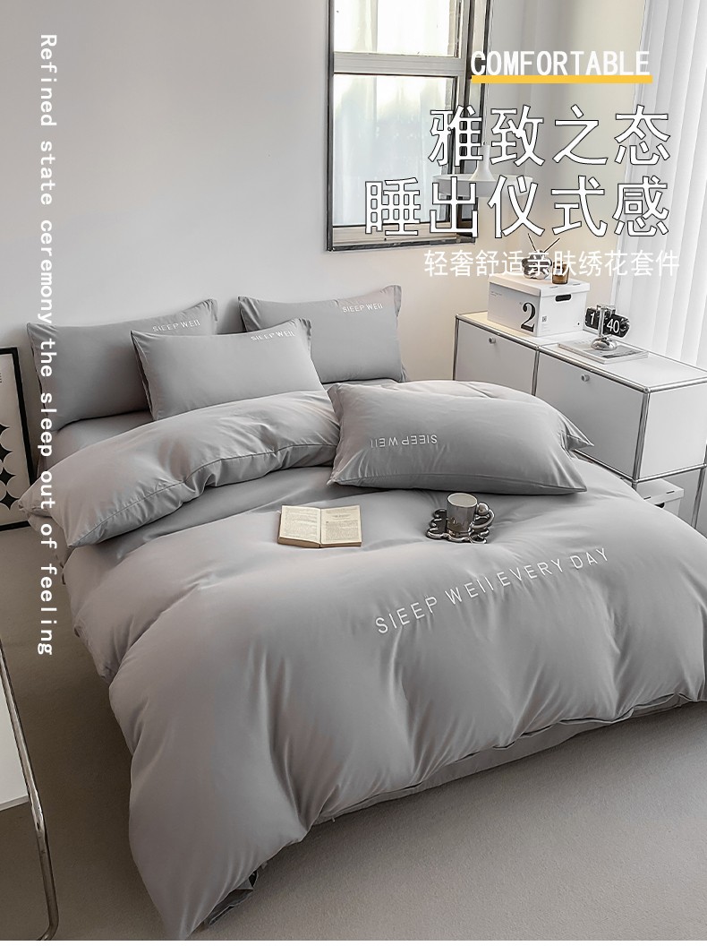 当前位置: 91家纺网 > 商品网购 > 床品套件 > 四件套 > 普通磨毛四件套 > 啊雅 2025新款双拼绣花四季款磨毛四件套 奶浅灰