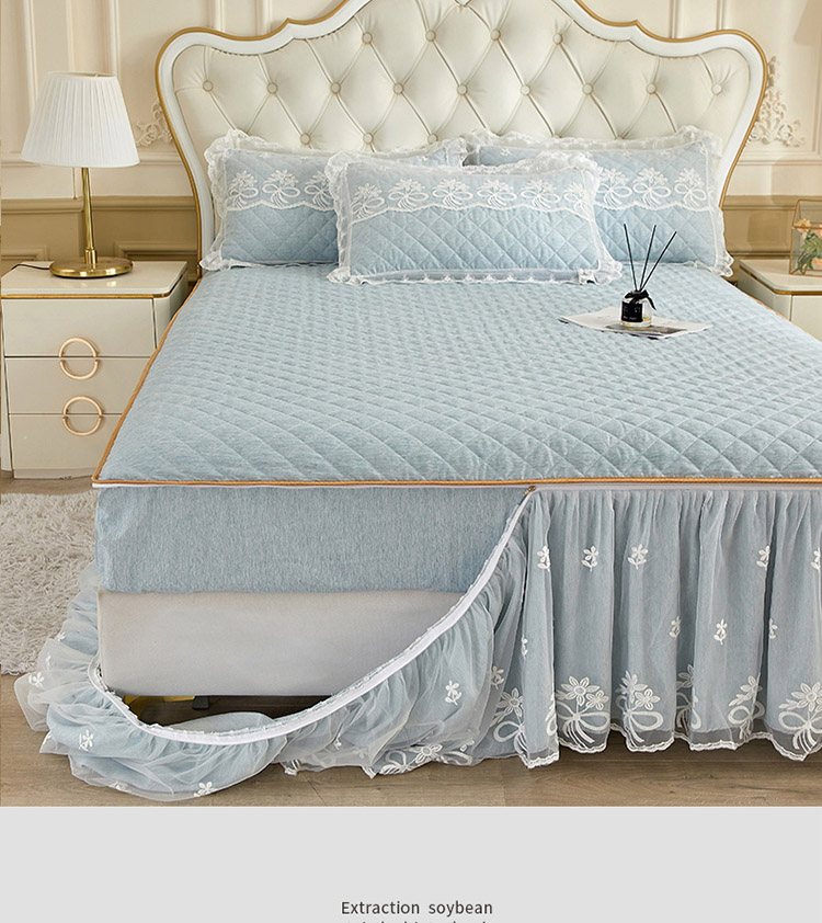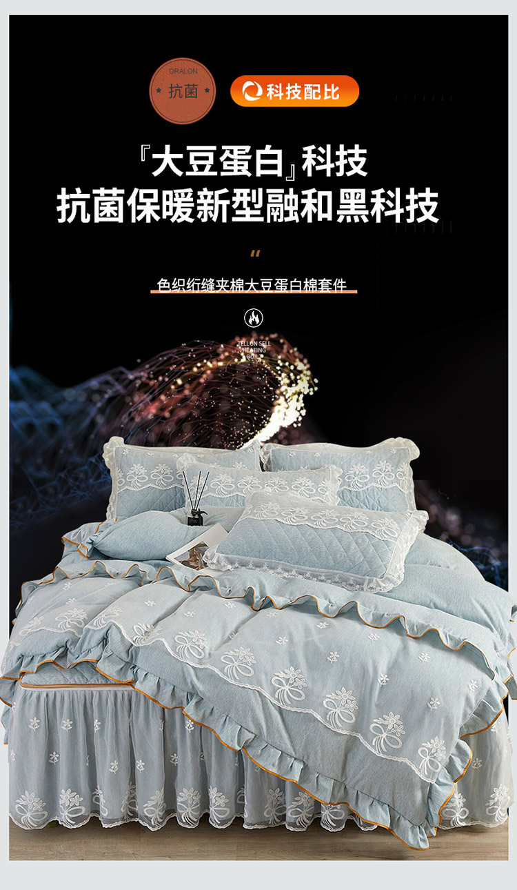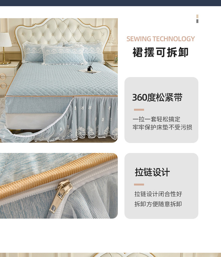 当前位置: 91家纺网 > 商品网购 > 床品套件 > 四件套 > 恋尚 2023新款色织系列床笠床裙可脱卸 四件套 芙娅-天青兰