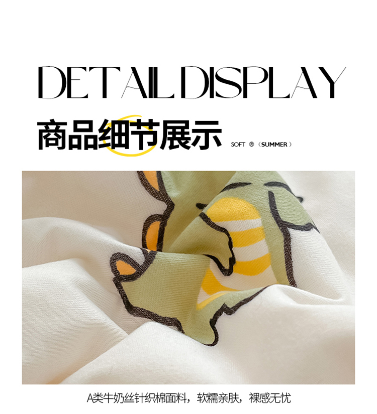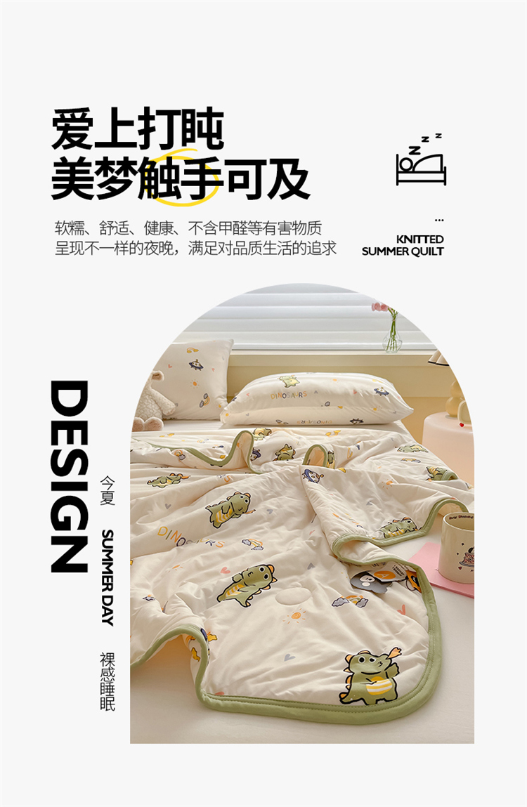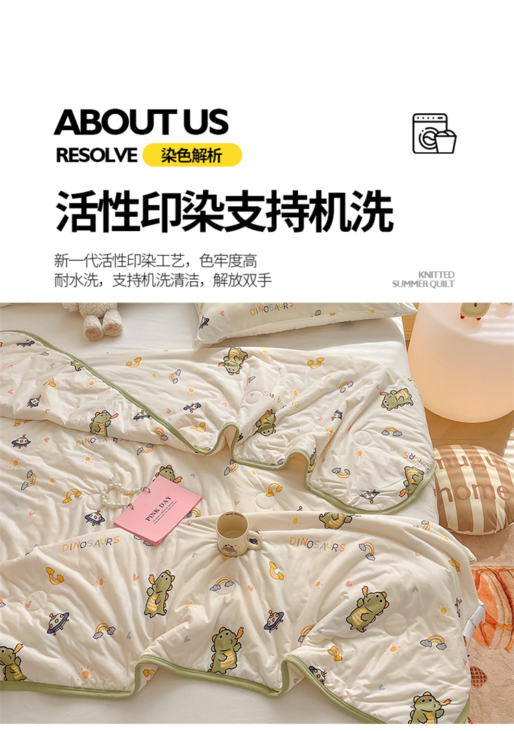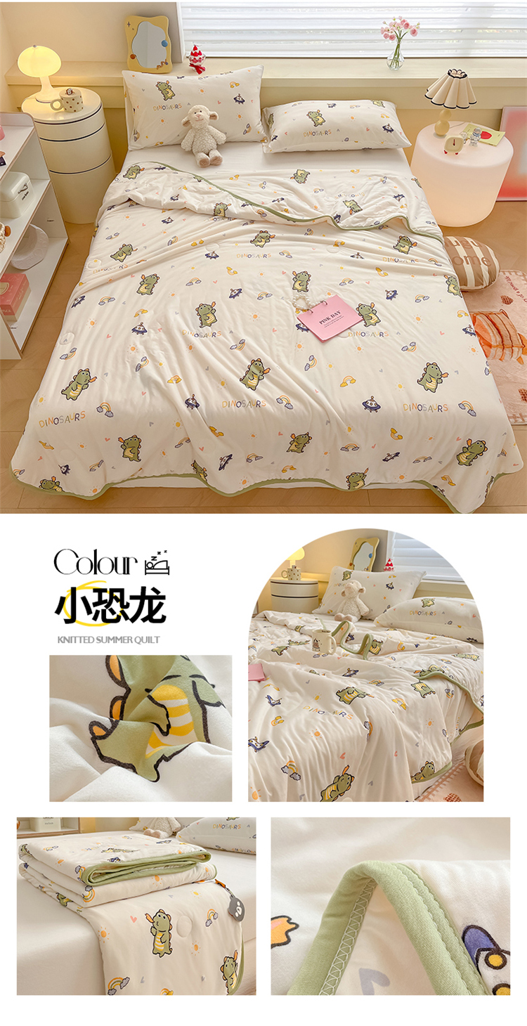 商品名称:桃子 2023新款A类ins高品质小清新花卉卡通牛奶丝针织棉夏被 针织棉夏被-小恐龙