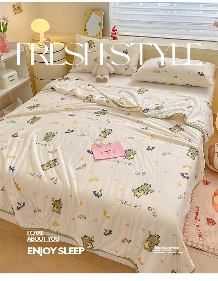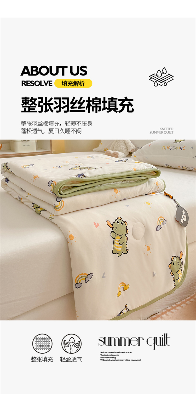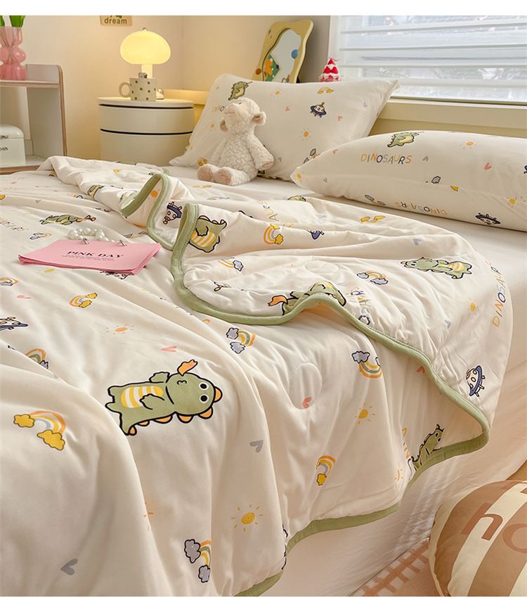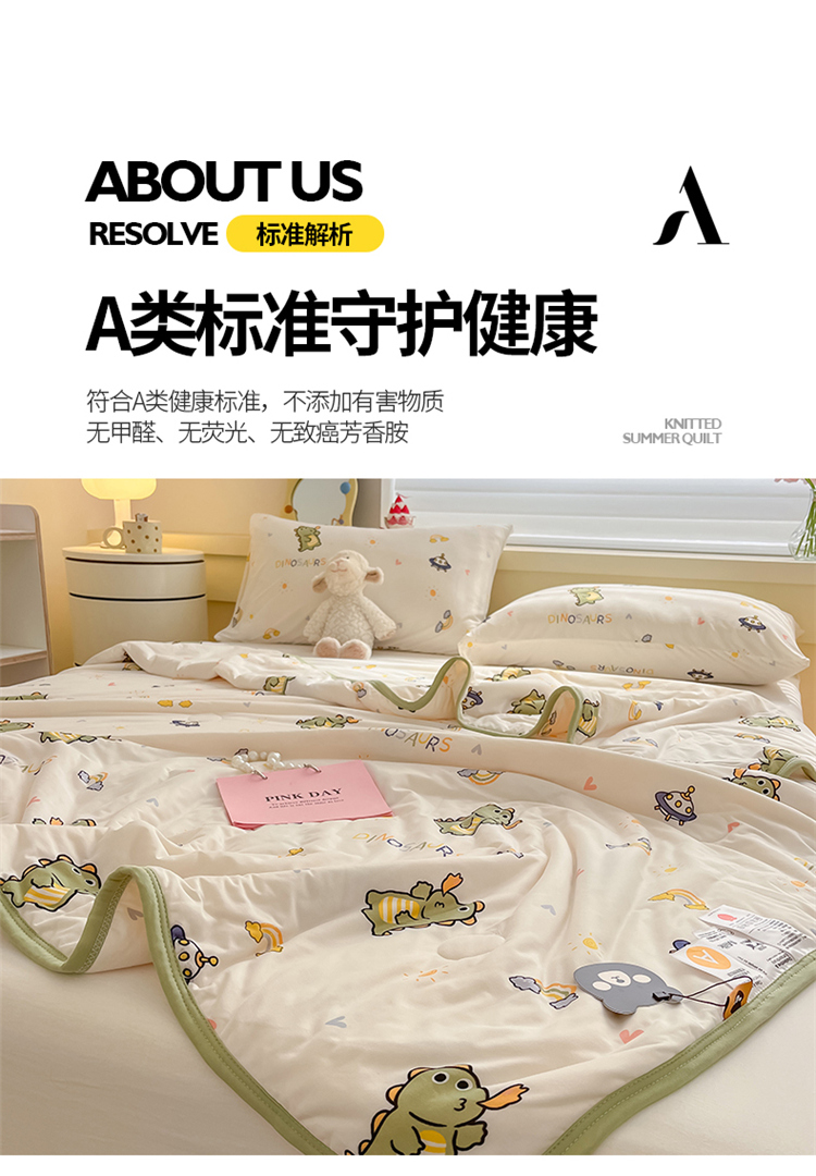 桃子 2023新款A类ins高品质小清新花卉卡通牛奶丝针织棉夏被 针织棉夏被-小恐龙