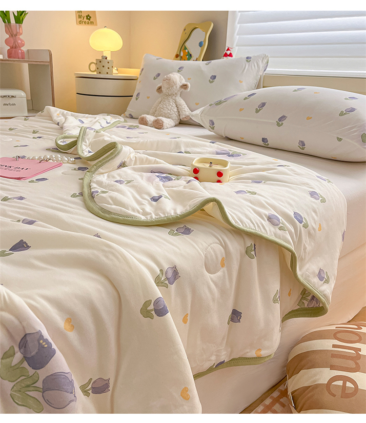 • 91家纺网 家纺一手货源 找家纺 桃子 2023新款A类ins高品质小清新花卉卡通牛奶丝针织棉夏被 针织棉夏被-紫色郁金香