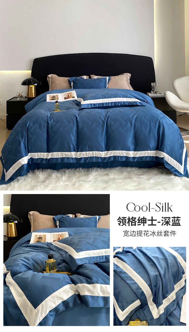 优悦 宽边提花冰丝四件套 领格绅士-深蓝