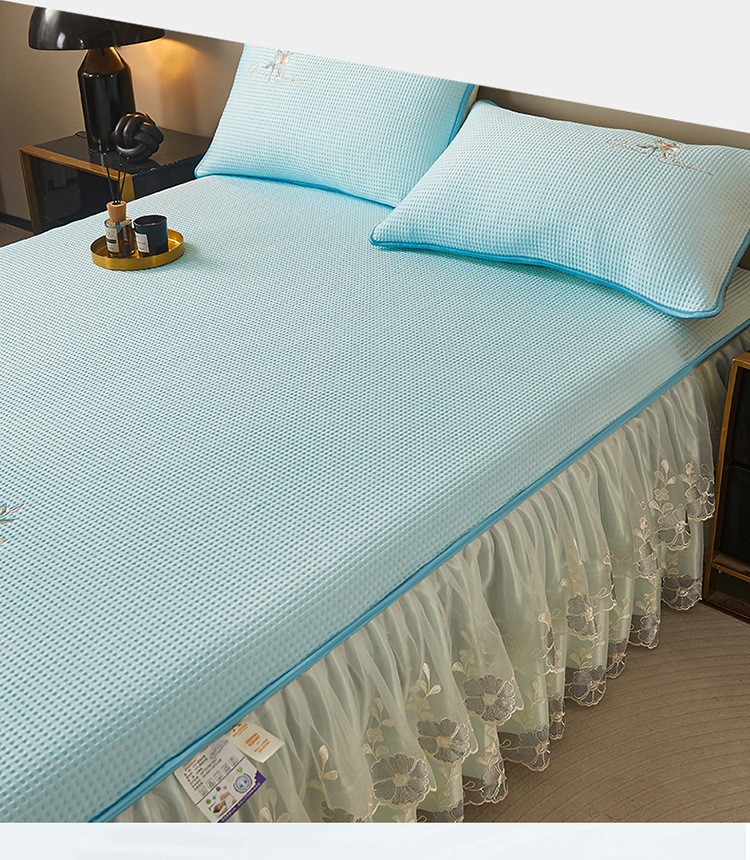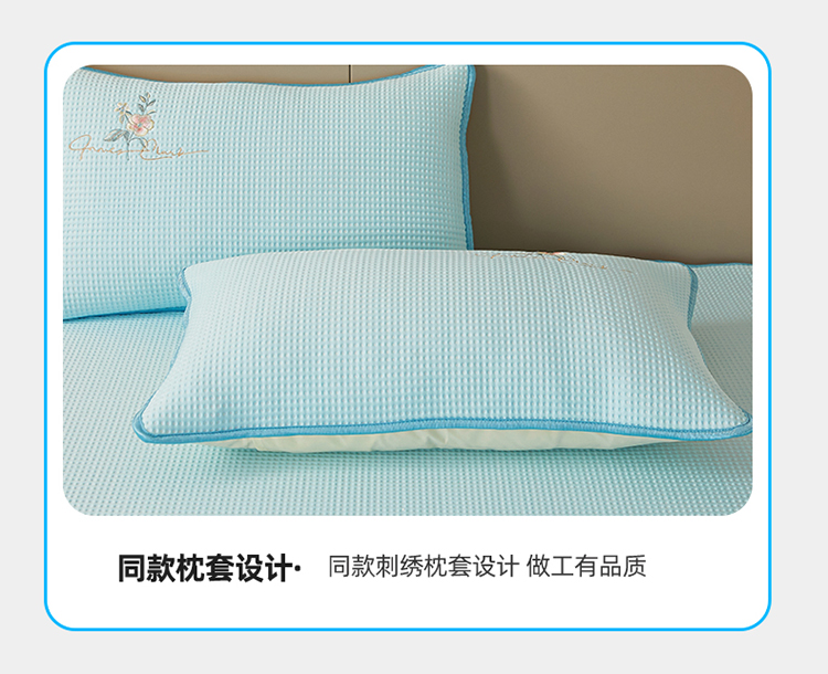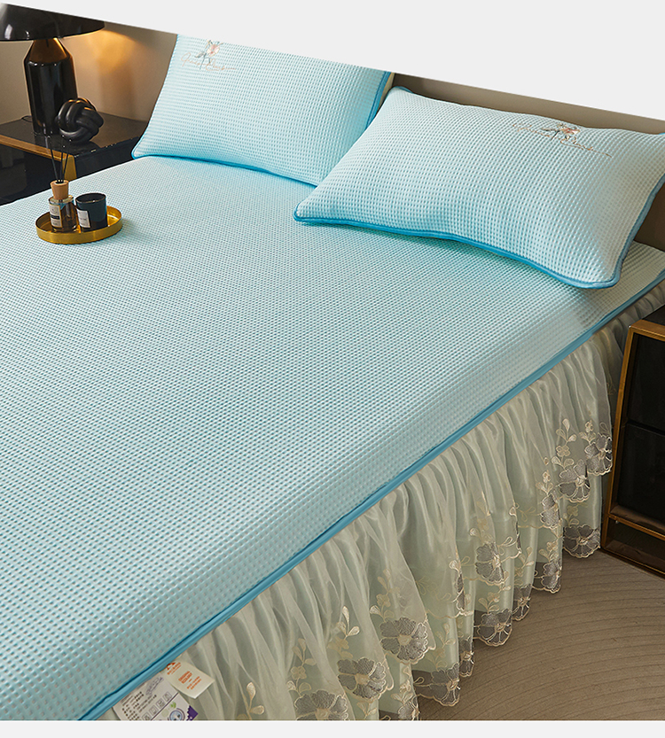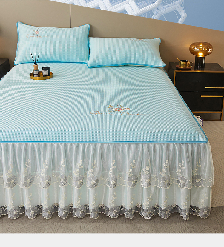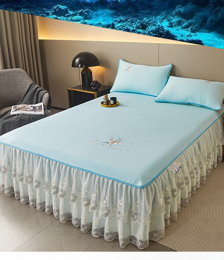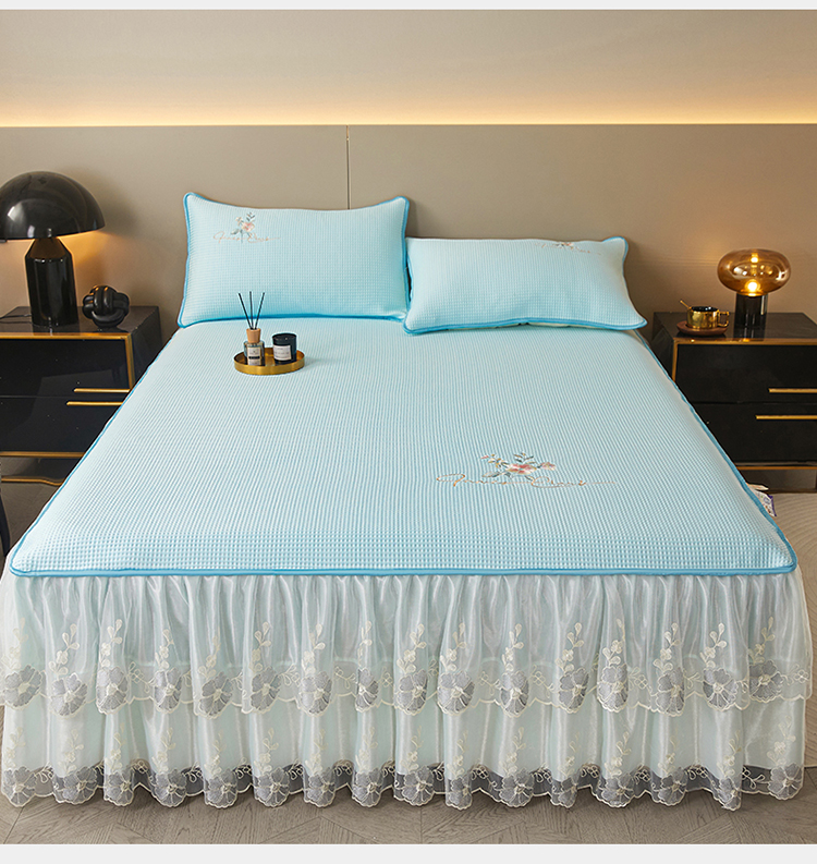 恒爱 2023 刺绣华夫格床裙三件套 冰蓝(床裙款)