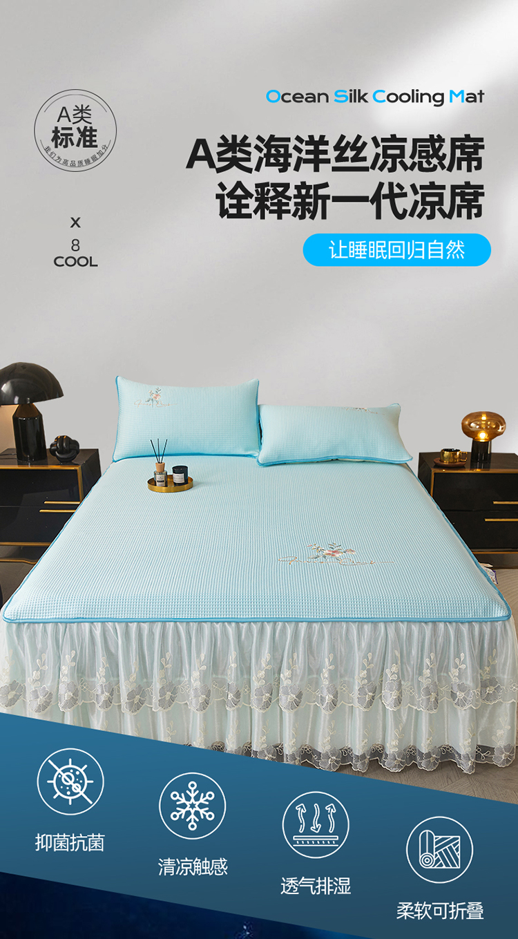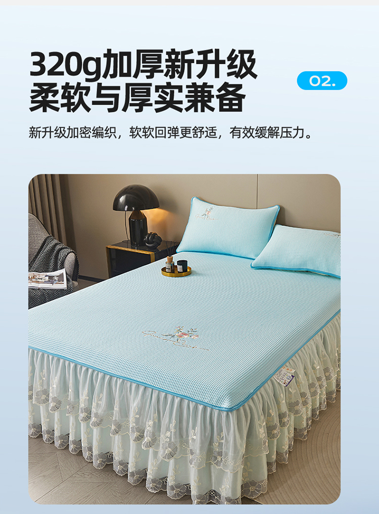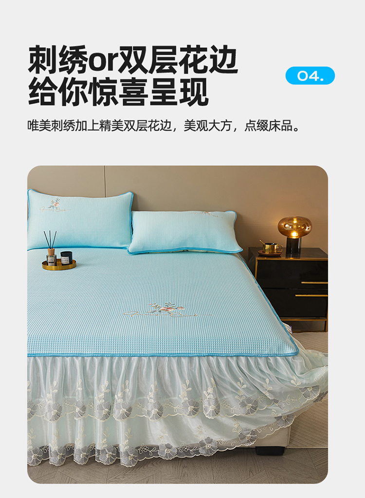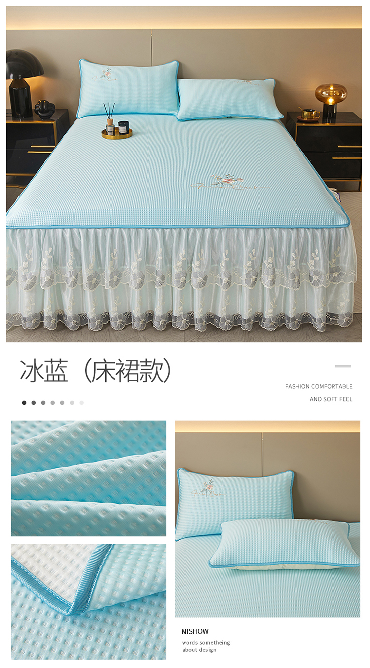商品名称:恒爱 2023 刺绣华夫格床裙三件套 冰蓝(床裙款)