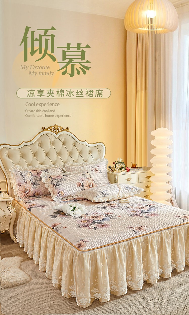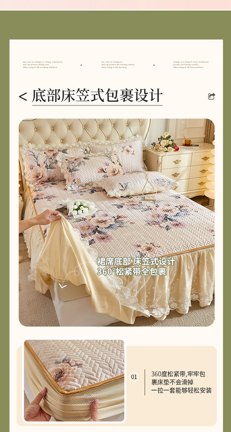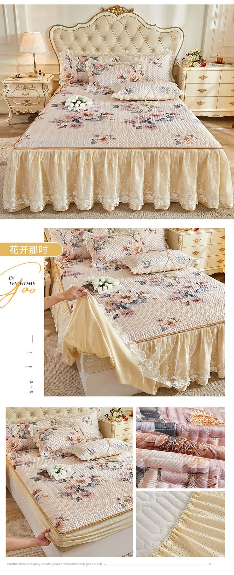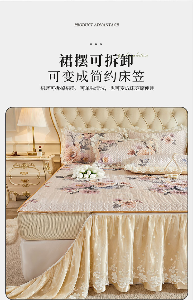 恋尚 2024新款床笠式可拆卸冰丝夹棉 床裙软席三件套 花开那时
