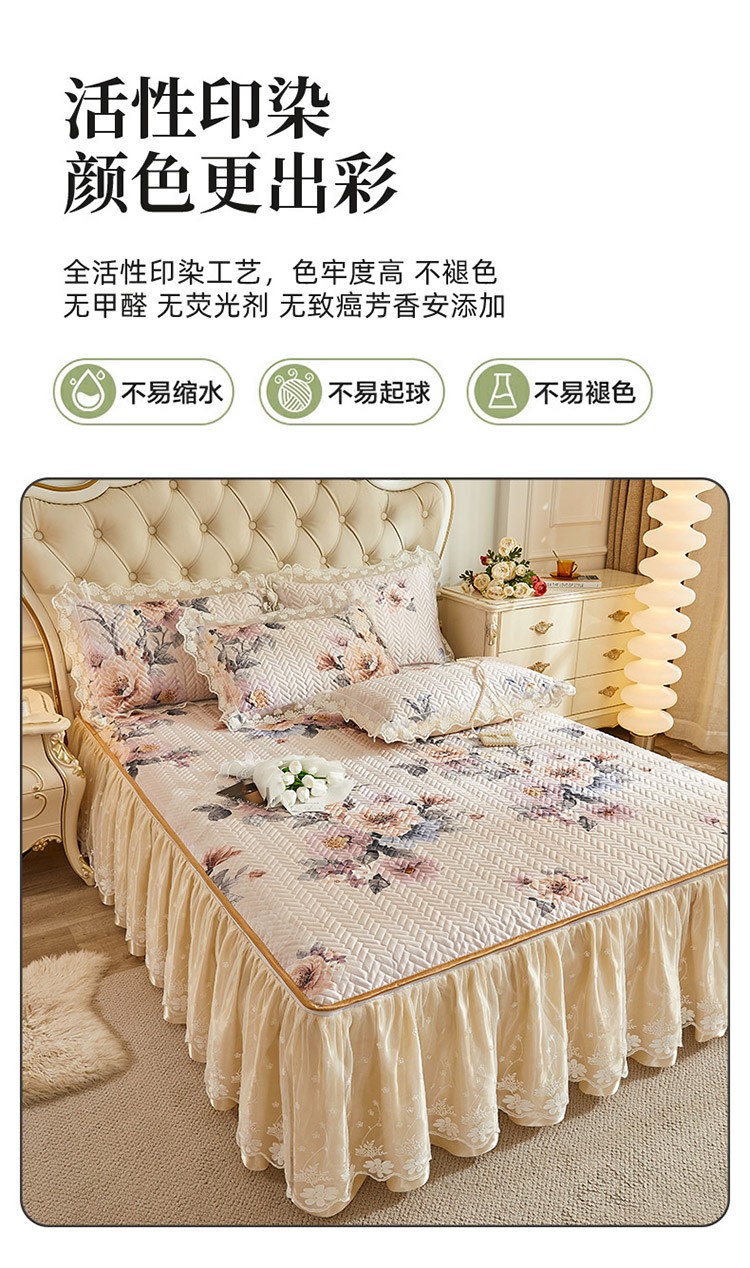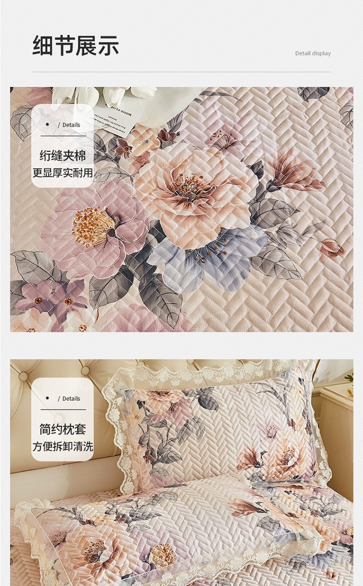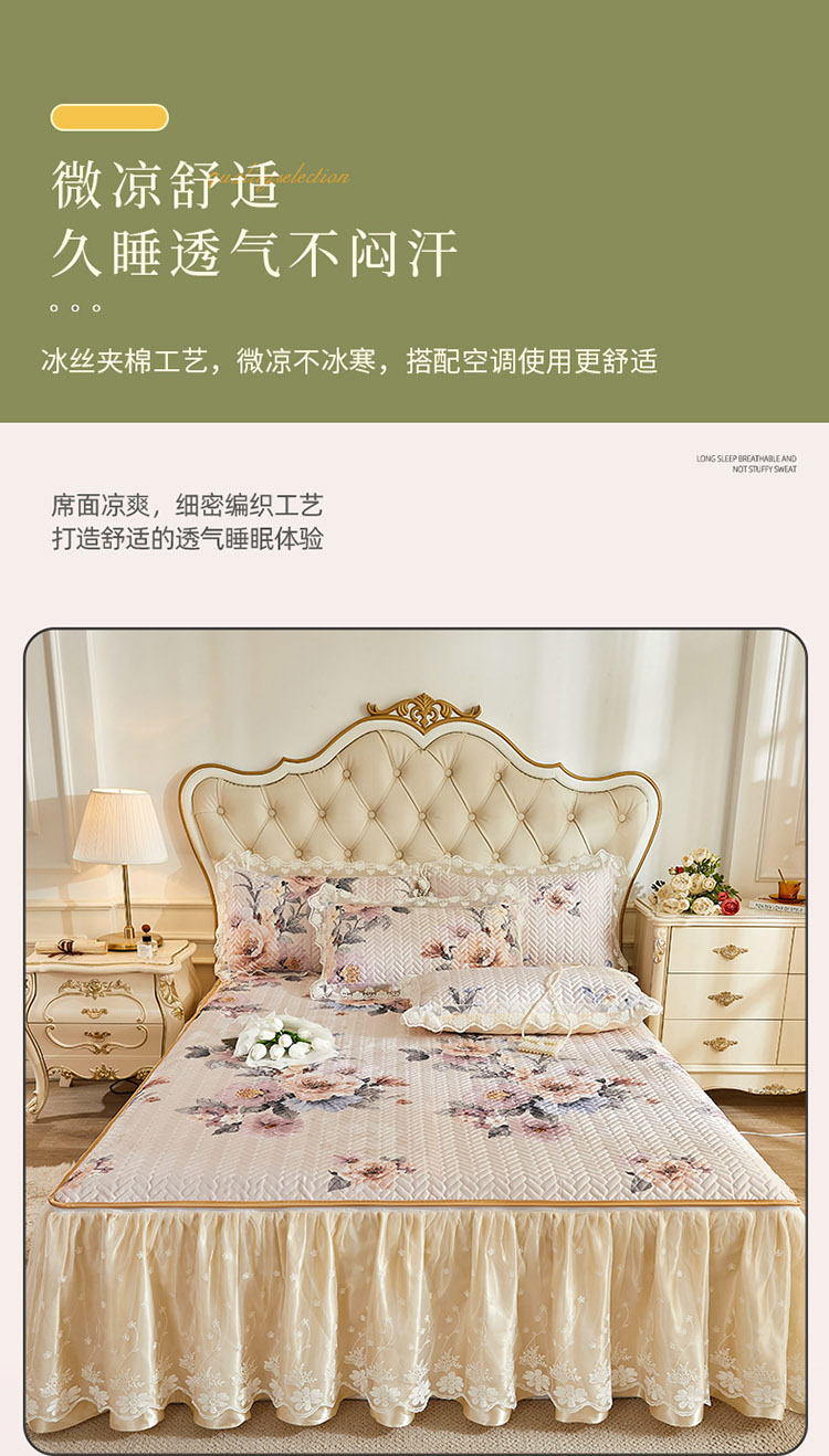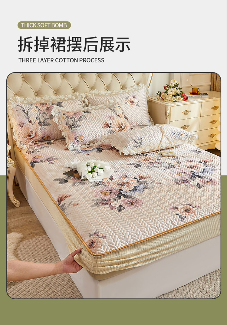 商品名称:恋尚 2024新款床笠式可拆卸冰丝夹棉 床裙软席三件套 花开那时