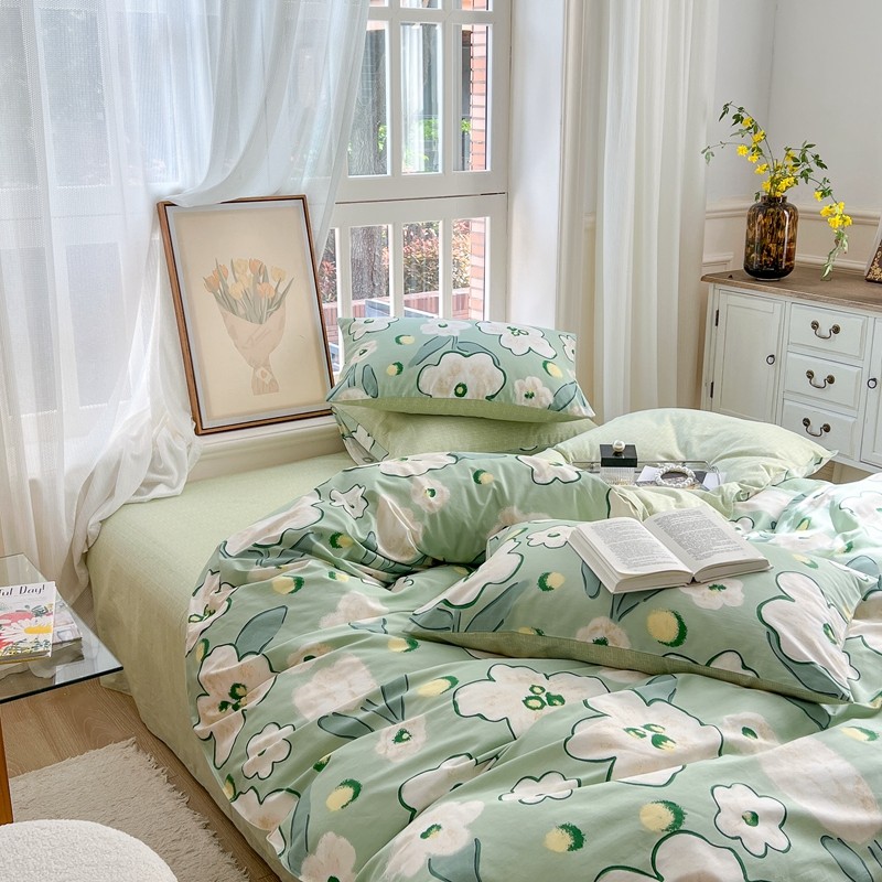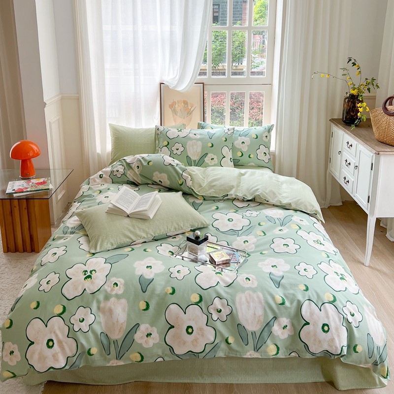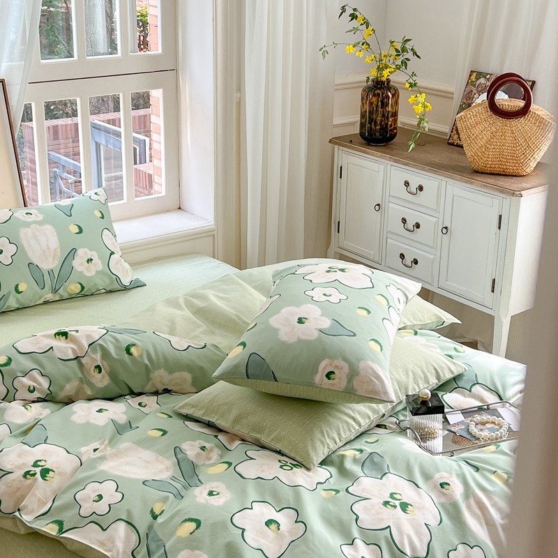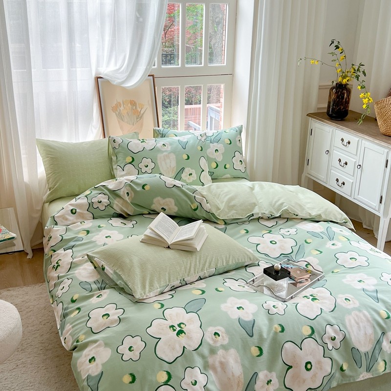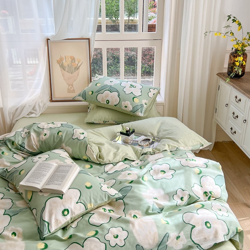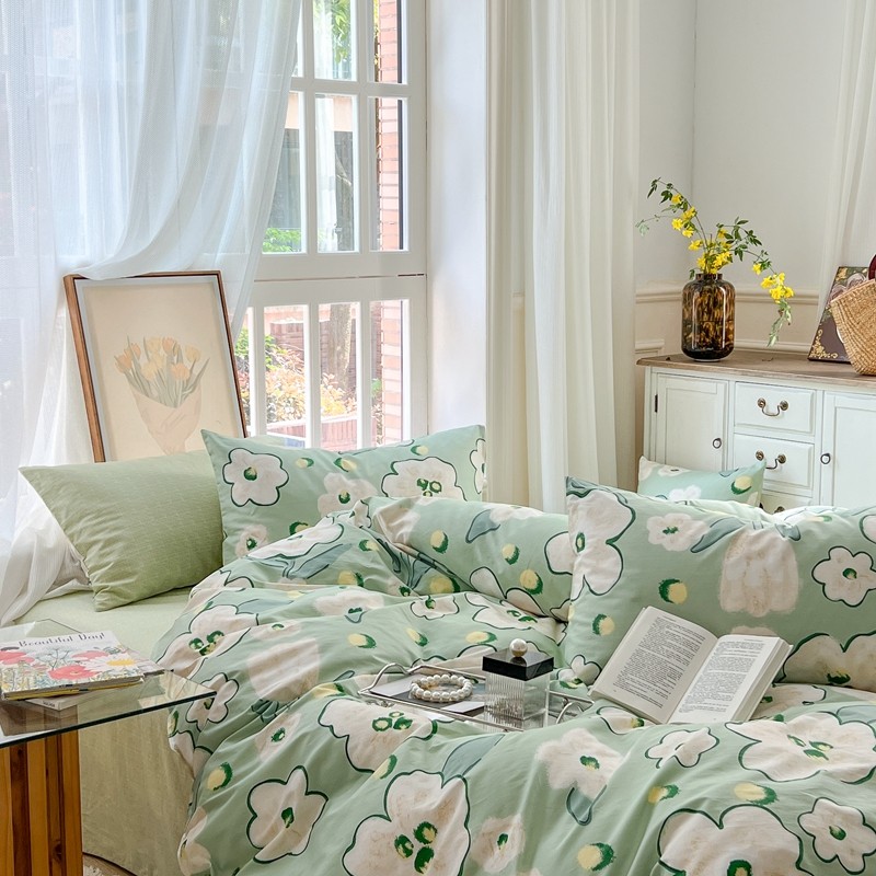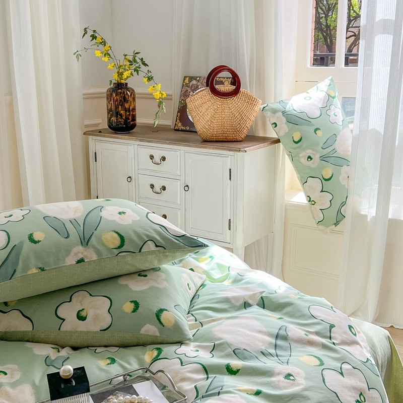 (总)时年家纺 2025新款全棉有氧双层纱系列套件 充值会员优惠5元/套,春日,清辞