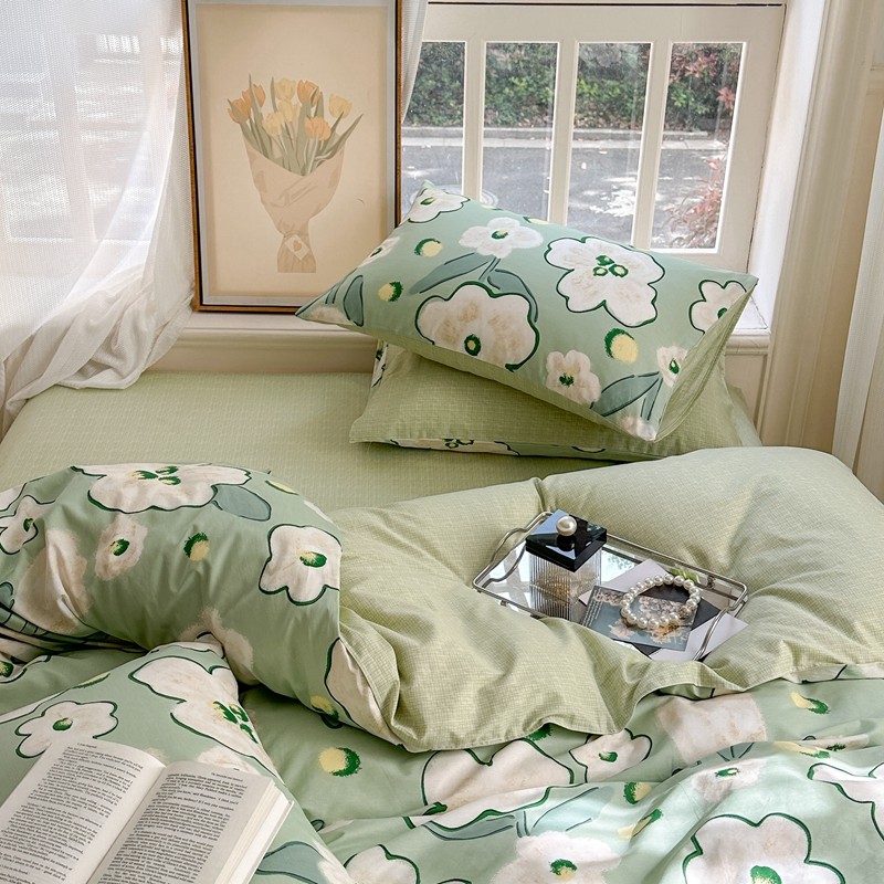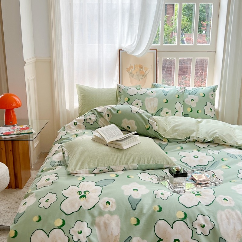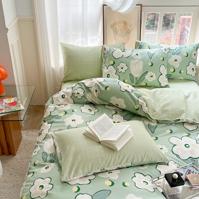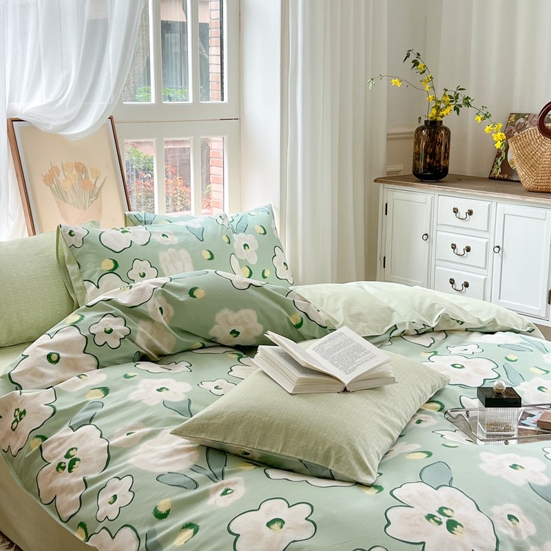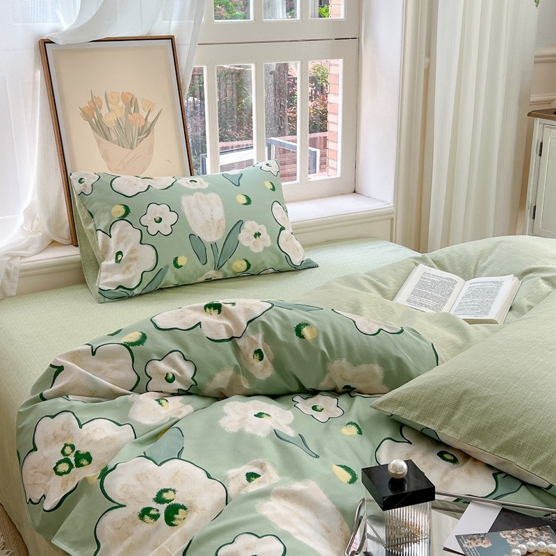 时年 2022新款全棉40支13372ins条纹款四件套 复古奶绿,复古奶绿