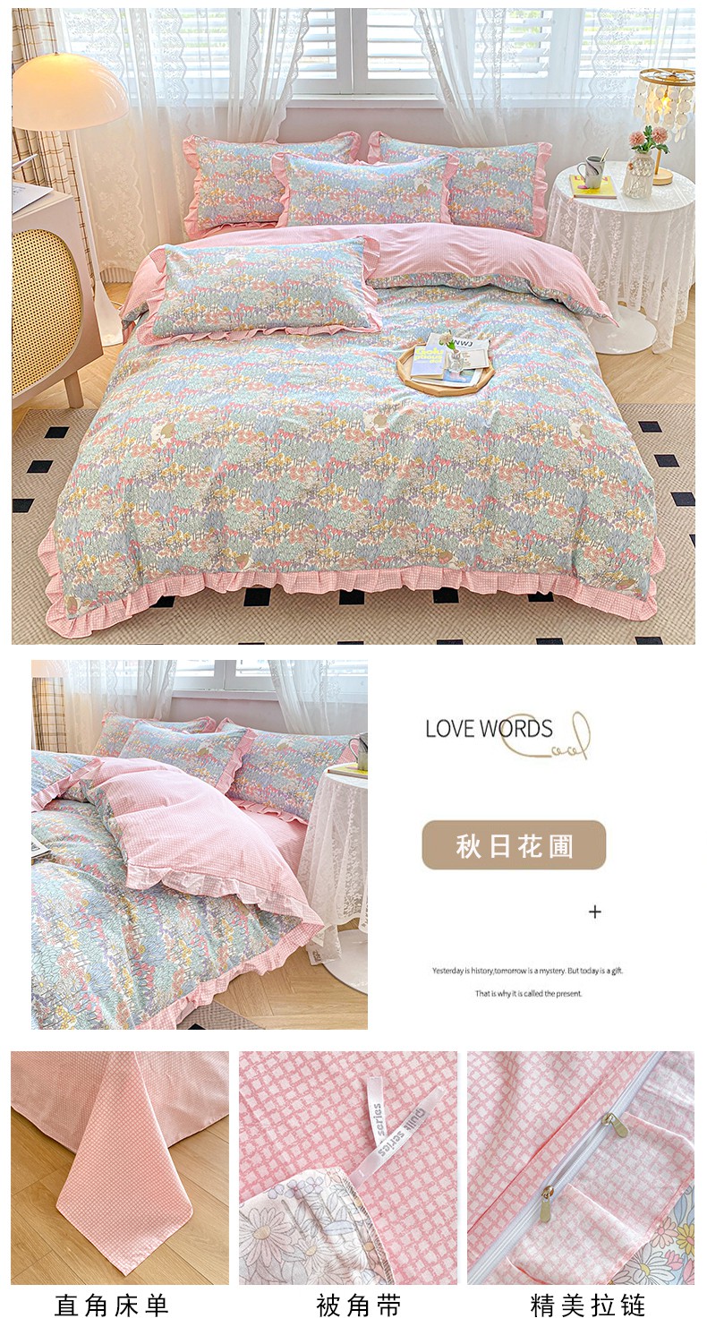 当前位置: 91家纺网 > 商品网购 > 床品套件 > 四件套 > 全棉普通四件套 > 宇彬20223年新款13372全棉韩版刺绣花边和印花花边四件套和单被套 印花花边 秋日花圃